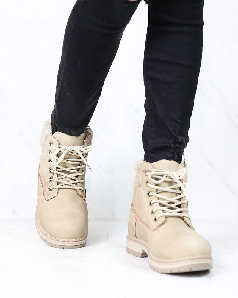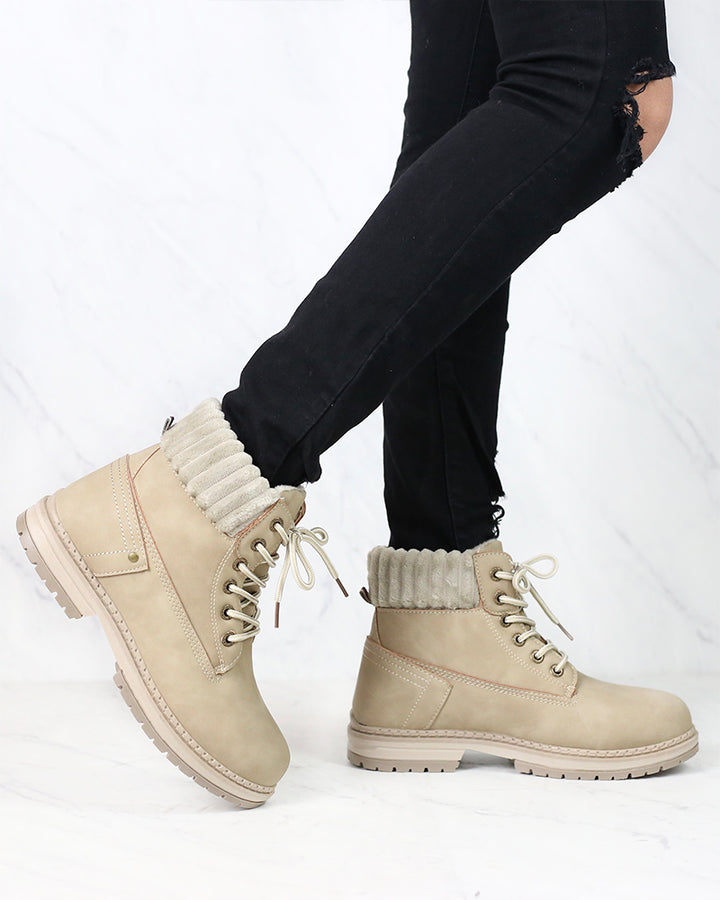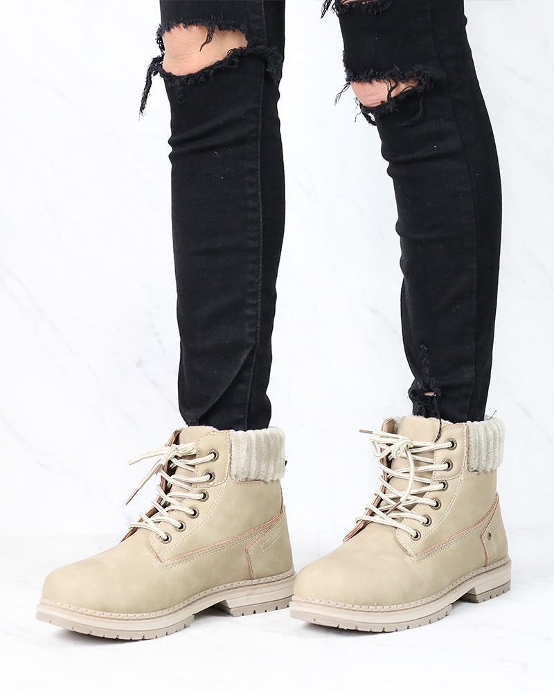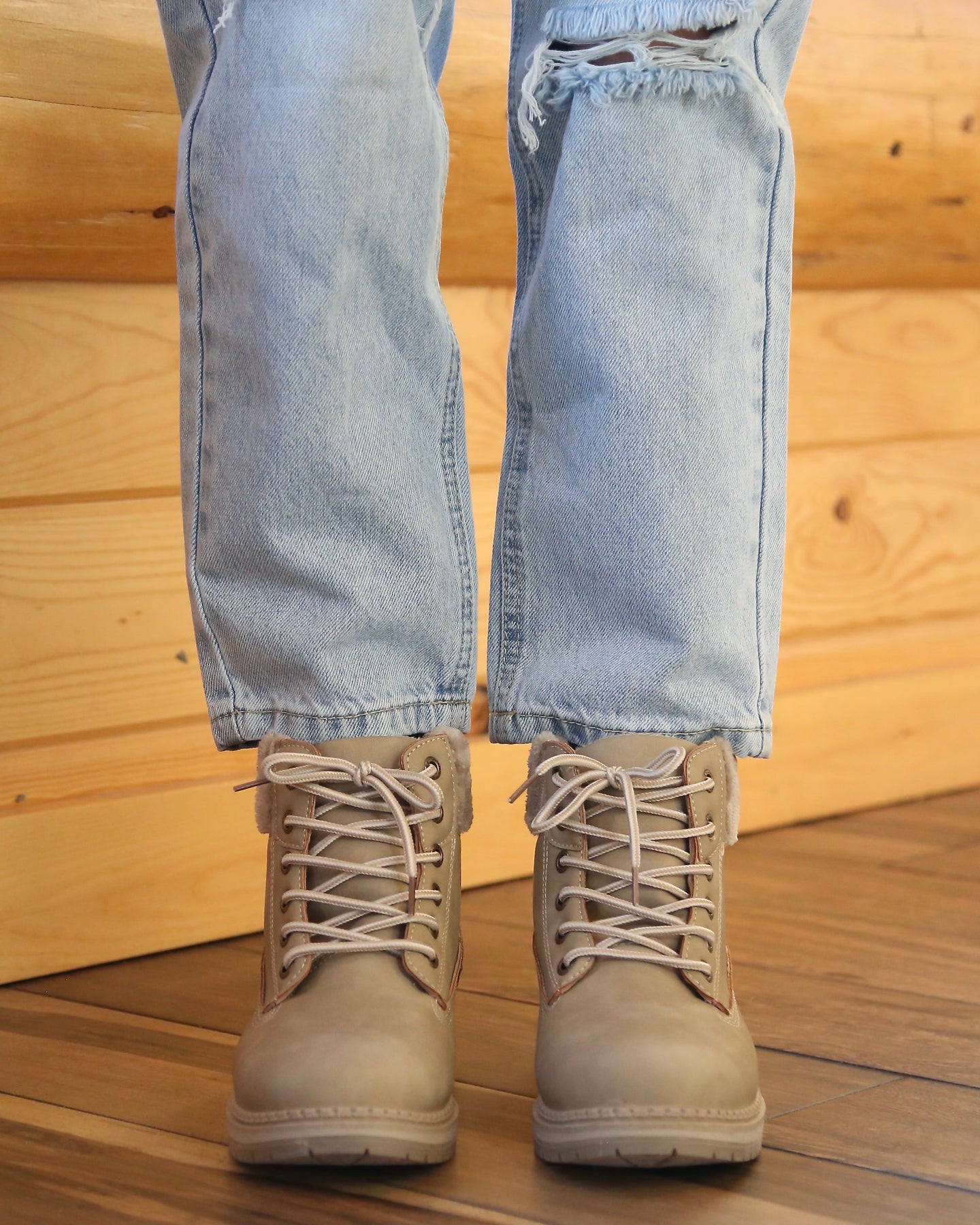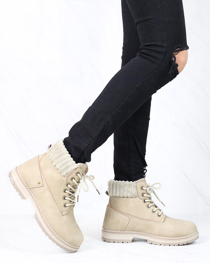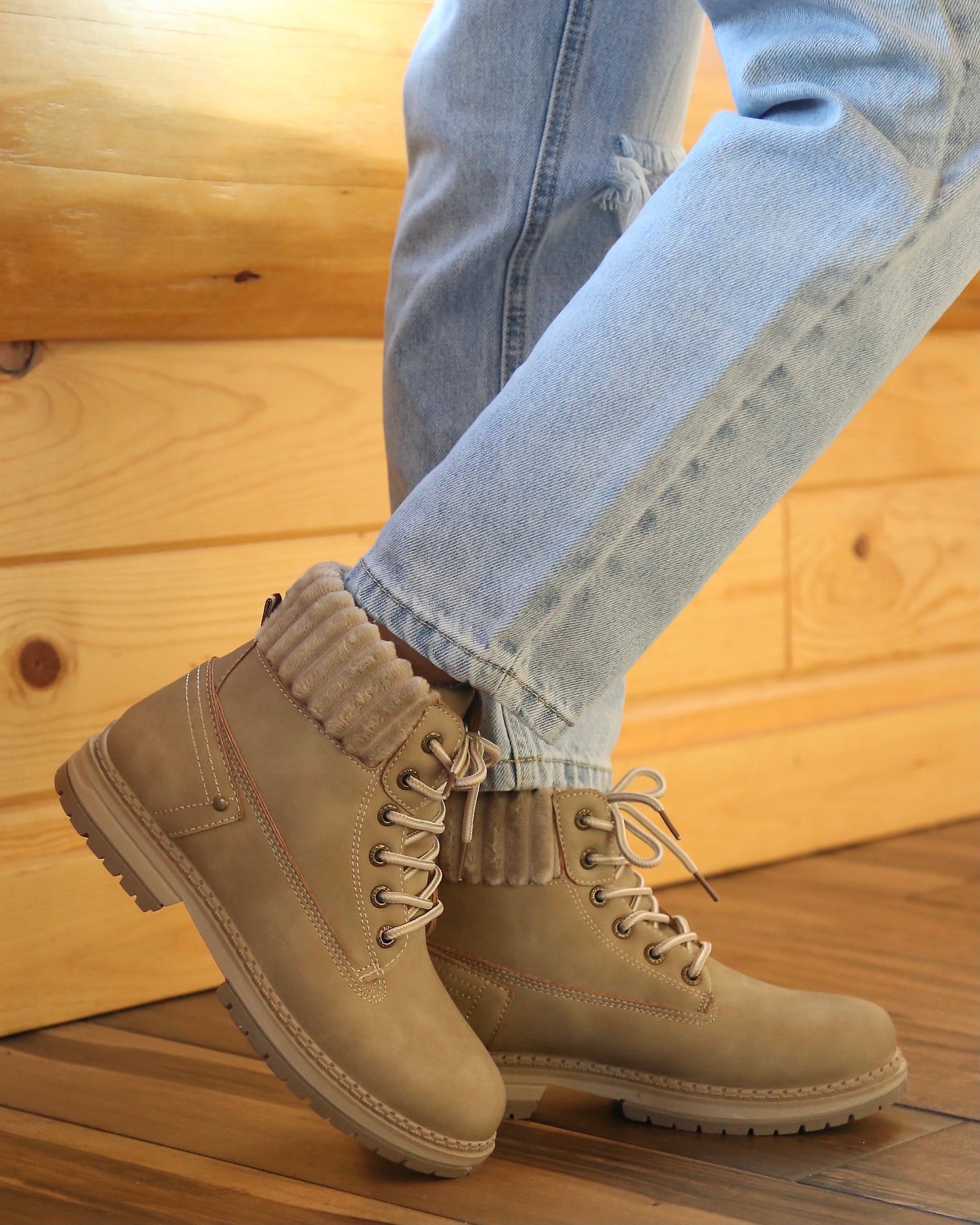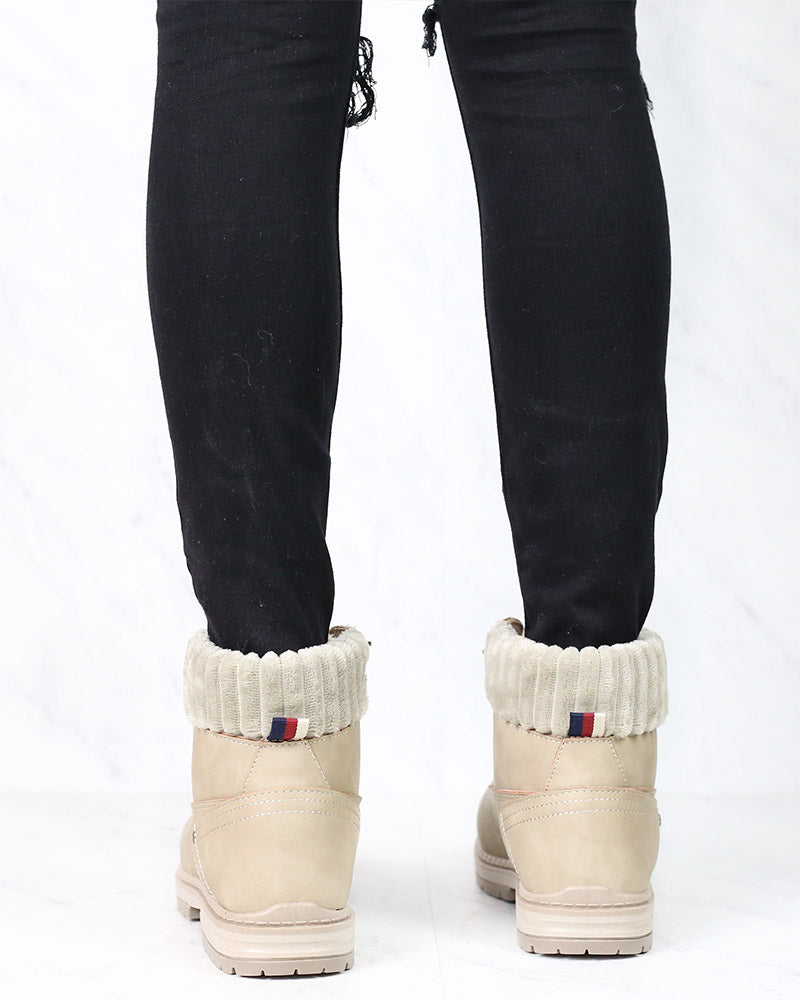 Dirty Laundry - Alpine Cozy Sweater Cuff Ankle Lug Boots in Stone