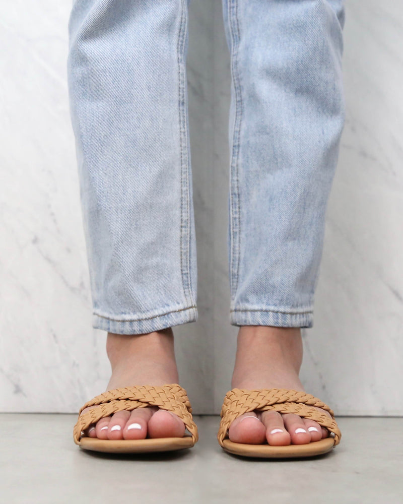Aloha by Billini is a woven style slide. The woven trend is here to stay, and this chic slide is no exception for the ultimate in summer style. Featuring a padded flat sole, open square toe, tightly woven crossover straps, open heel counter, and an easy slip on design, these sandals are perfect for every outfit this summer!