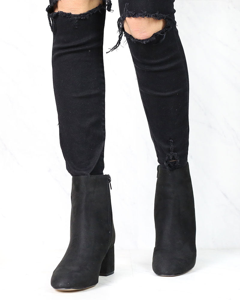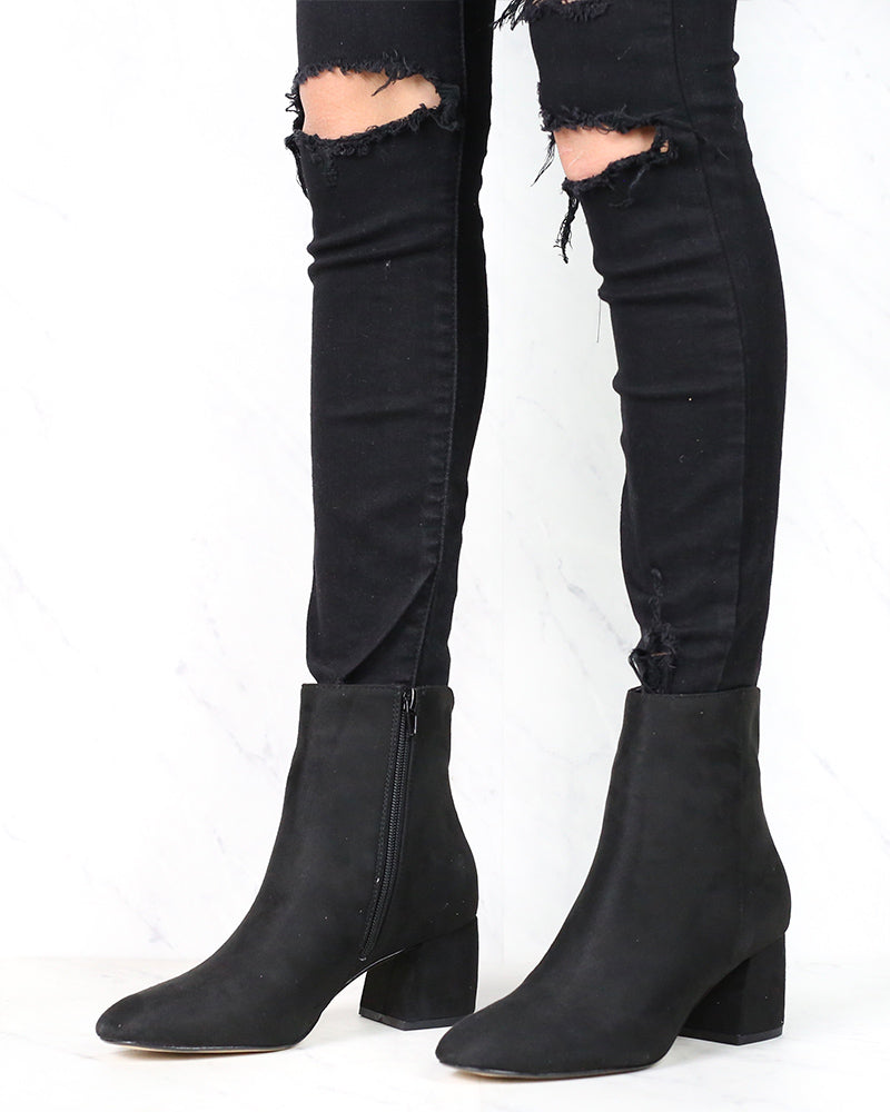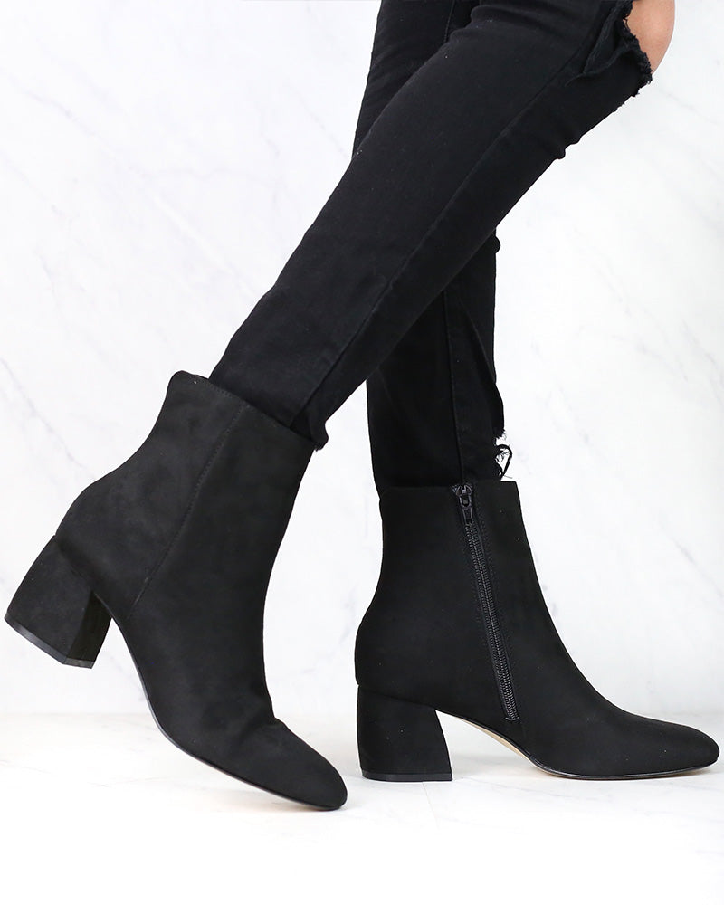 These Davinna suede chunky heel ankle booties are a closet must-have! These classic boots are super cute and easy to style. Wear this with your favorite casual tee and skinny jeans for a cute everyday look!