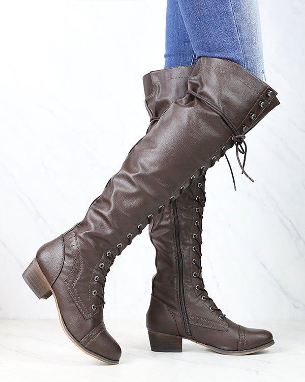 These are beautiful lace up over the knee boots. The size is true to size and they are very comfy. They look great with skirts, dresses, or just a pair of skinny jeans or leggings. Very happy with my purchase!
