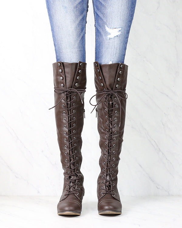 These boots are AMAZING!! Ive been looking for a brown lace up boot for awhile now. I have skinny legs and most boots are way to wide! These are great quality and you can tie them up tight! I wish they came in other colors! I would buy them!