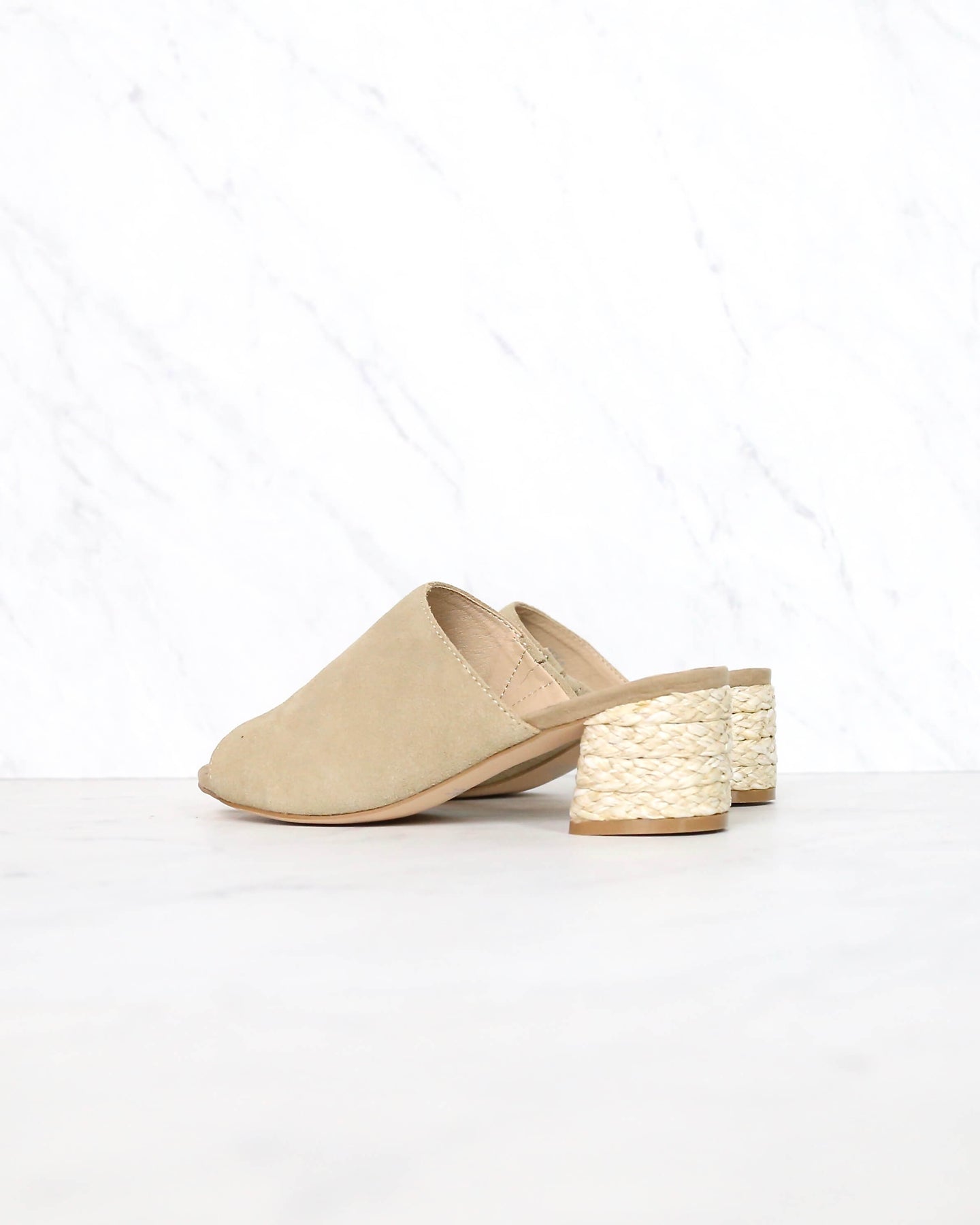 The casual and classy slip on peeptoe sandals features a leather upper with a jute wrap.