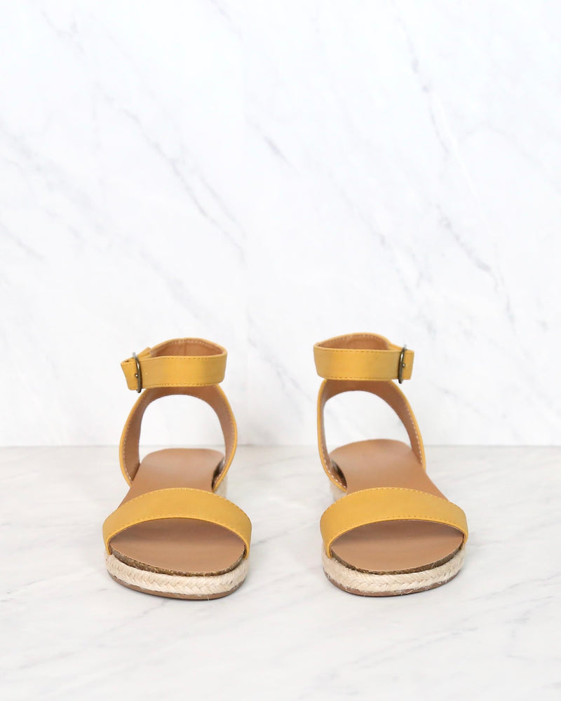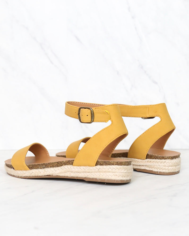 Single Band Platform Espadrille Sandals With Ankle Straps in Mustard