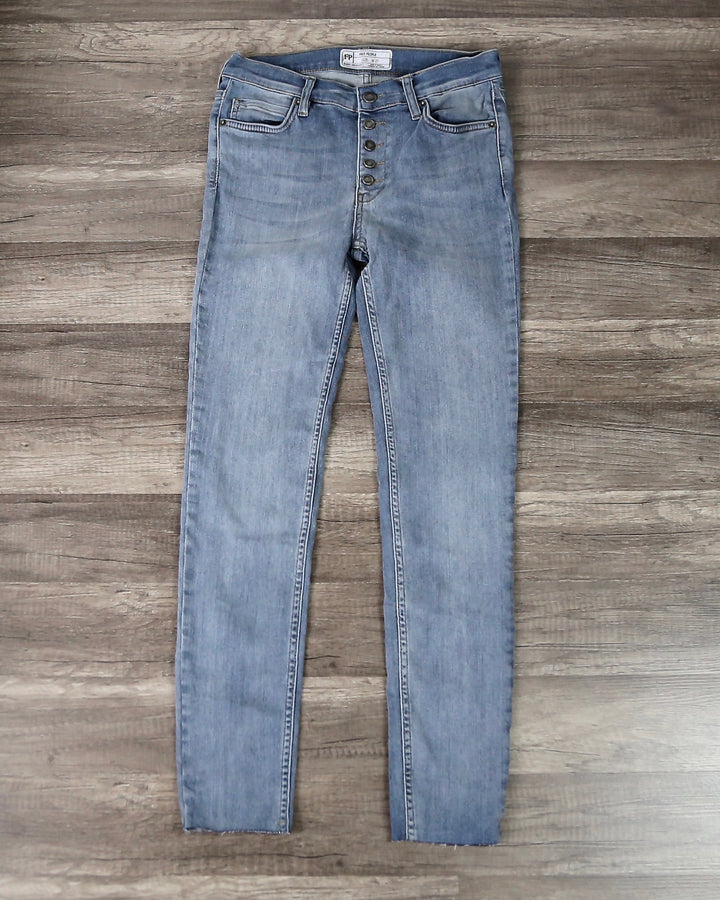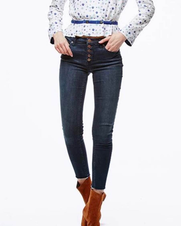 Cut in a mid-rise with a super skinny leg, these stretchy jeans are the perfect seasonless staple.