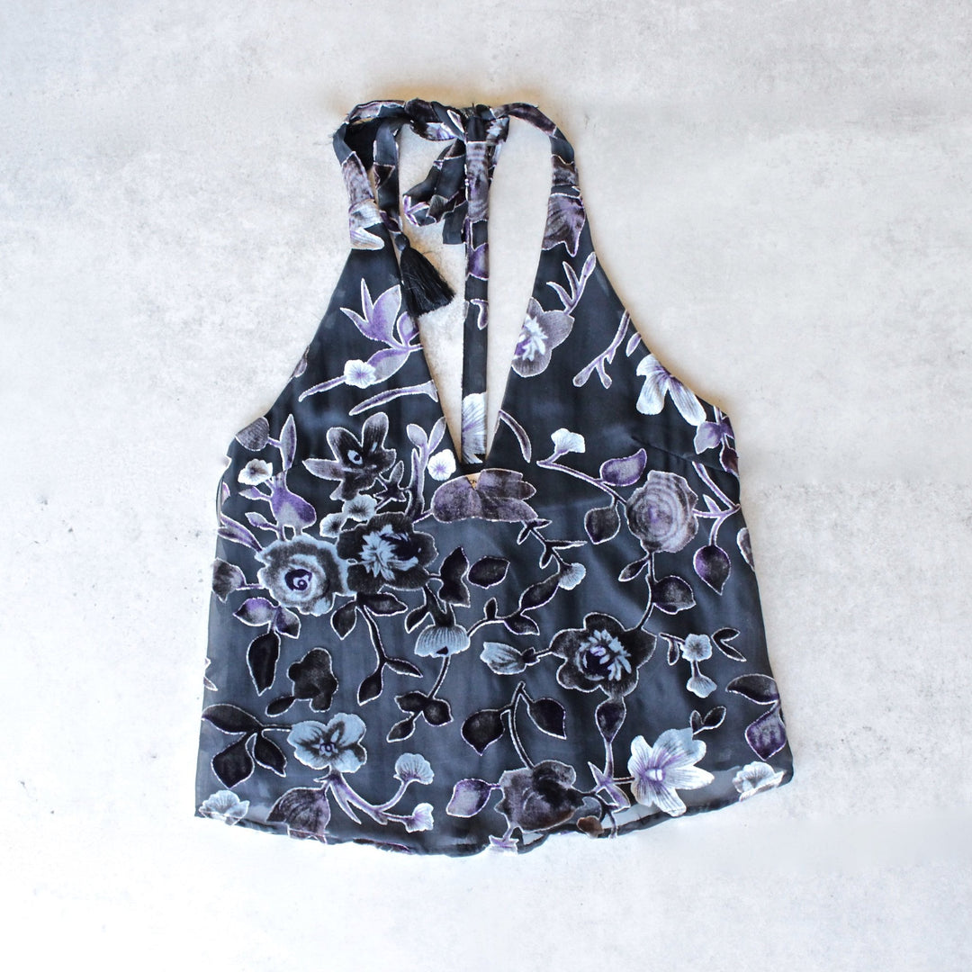 West Coast Crochet Tank with Tassels in Brown/Grey
