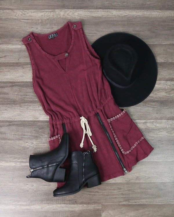 Casual And Comfy Drawstring Waist Dress in Burgundy