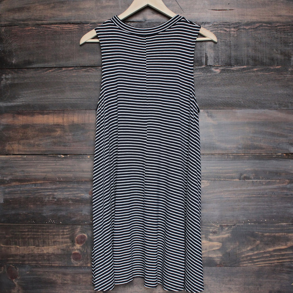 Final Sale - BSIC - Boho Striped Women's Tank Mini Dress in Black