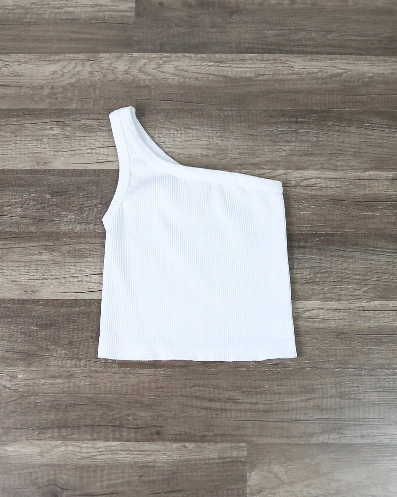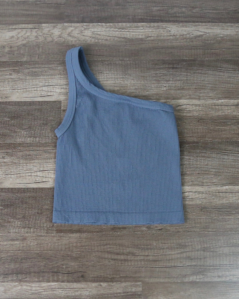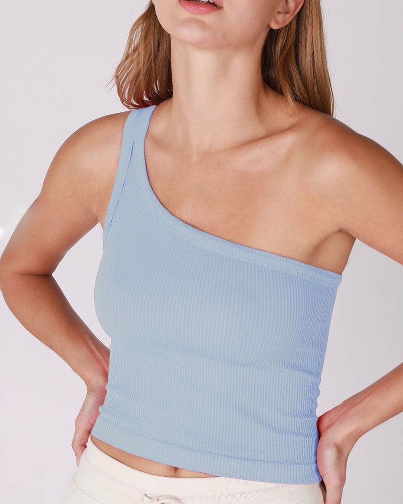 This basic crop top is perfect for almost every outfit! This crop top adds a flair to your outfits as it features a one shoulder feature, solid color, and ribbed fabric. Pair this crop top with some distressed jeans and some ankle booties!