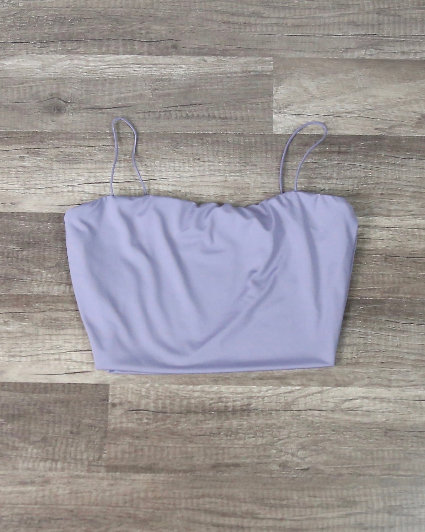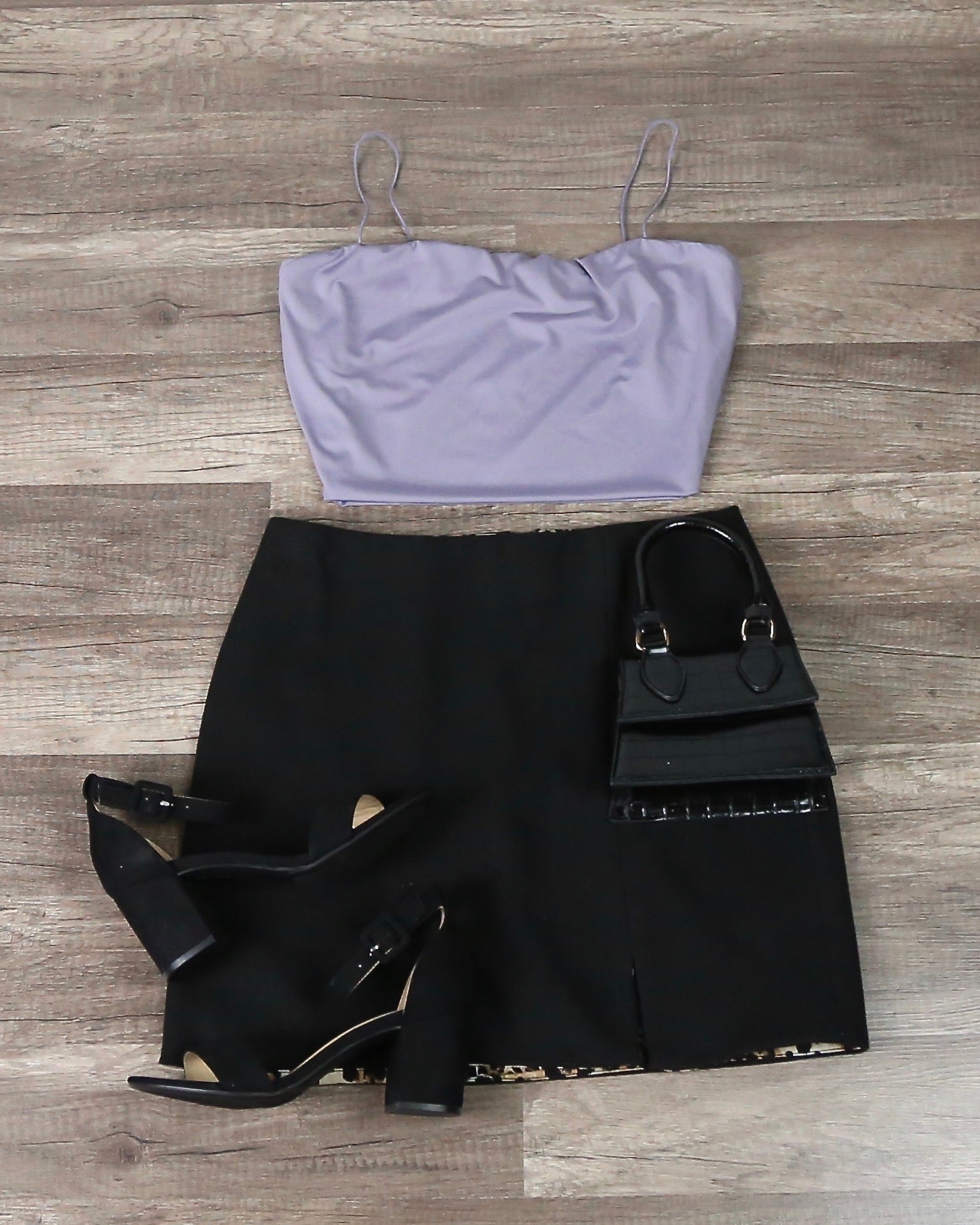 Everybody loves a good basic crop top in their lives! This crop top features thick bungee straps, straight neck, double layered, and a stretchy fit hugging material. Pair this crop top with a high waisted skirt, purse, and some heels for a cute look!