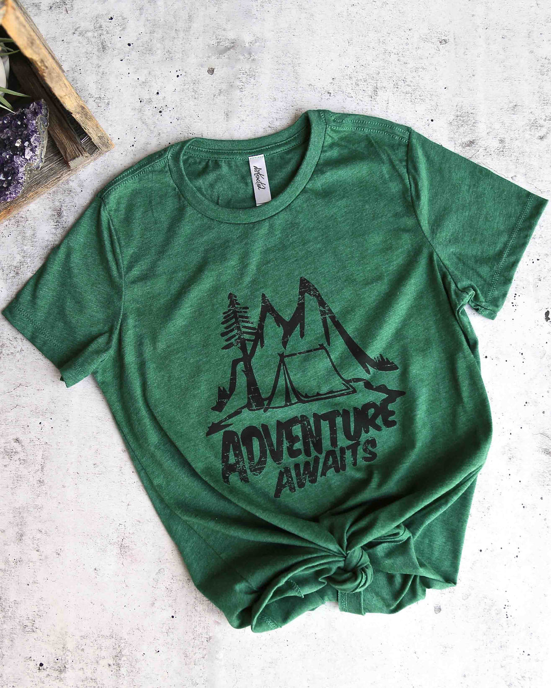 Distracted - Adventure Awaits Women's Favorite Cotton Tee in Heather Forest