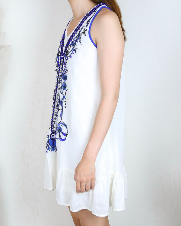 Ethereal Embroidered & Hand Beaded Bohemian Dress in Ivory
