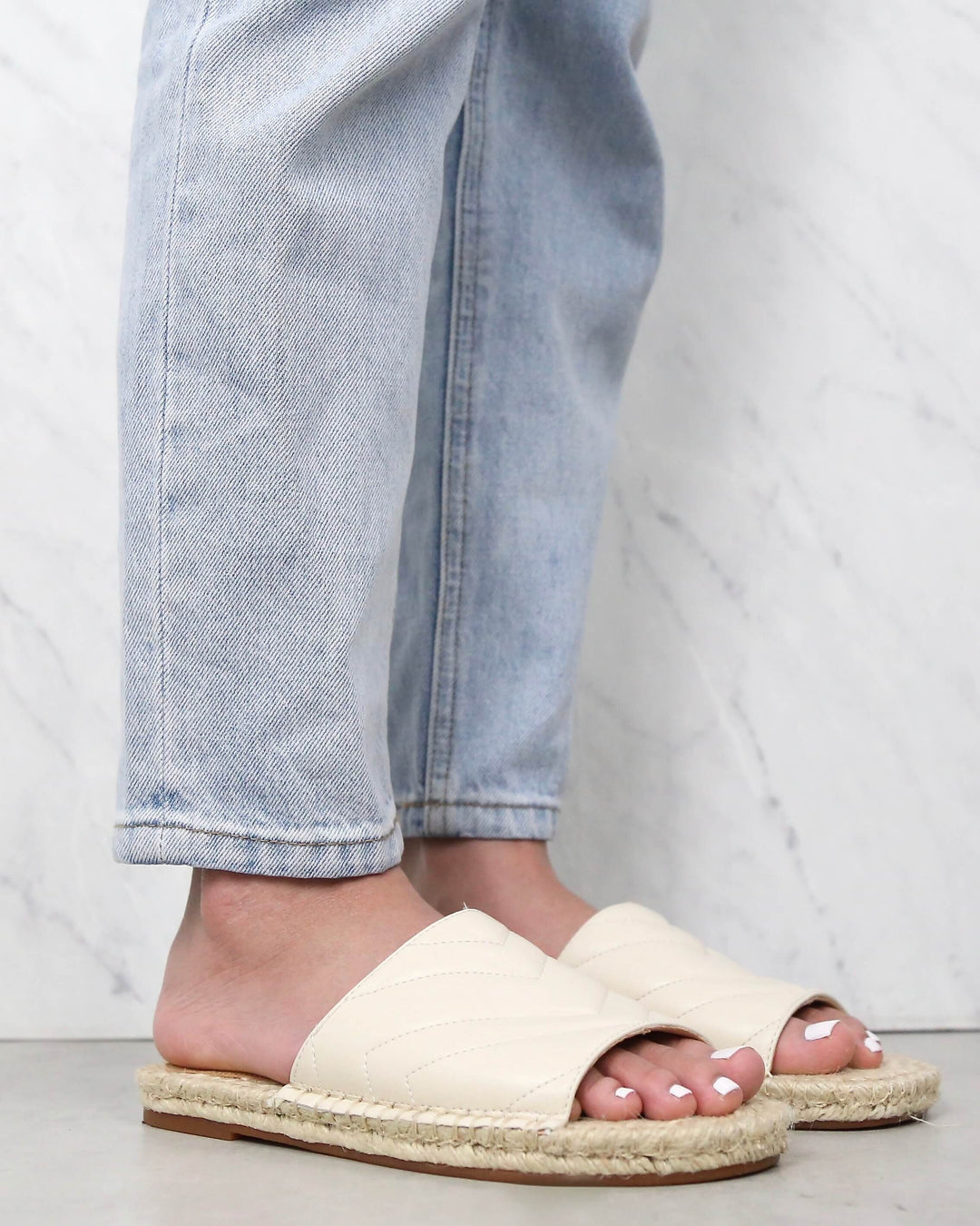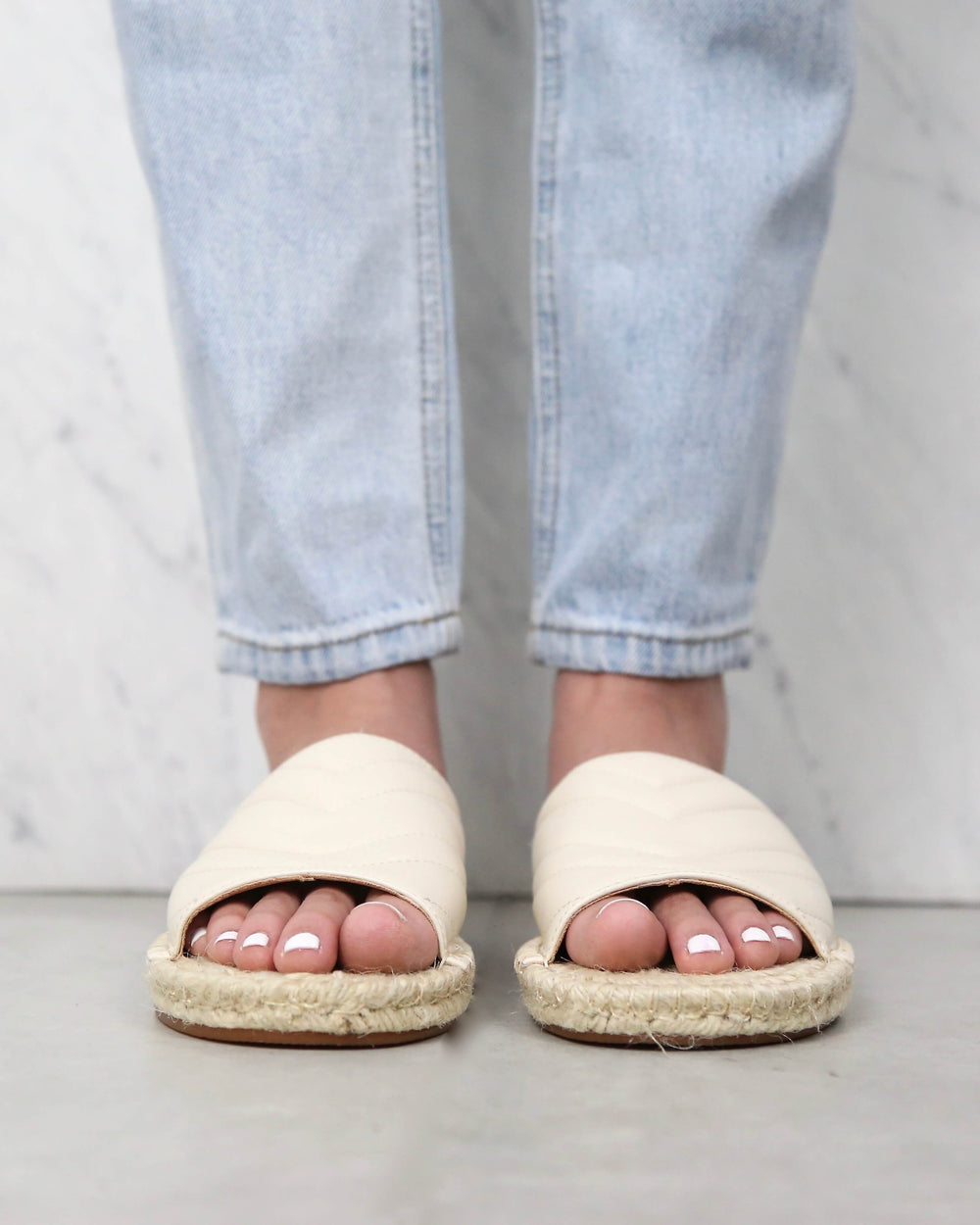 Cara Chevron Stitched Trim Espadrille Flat in Beige