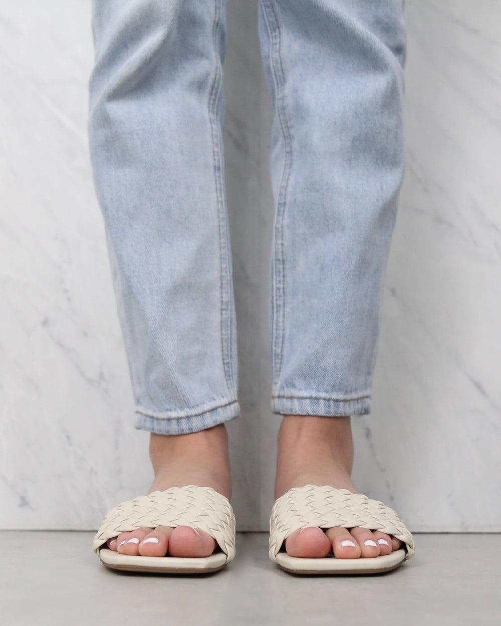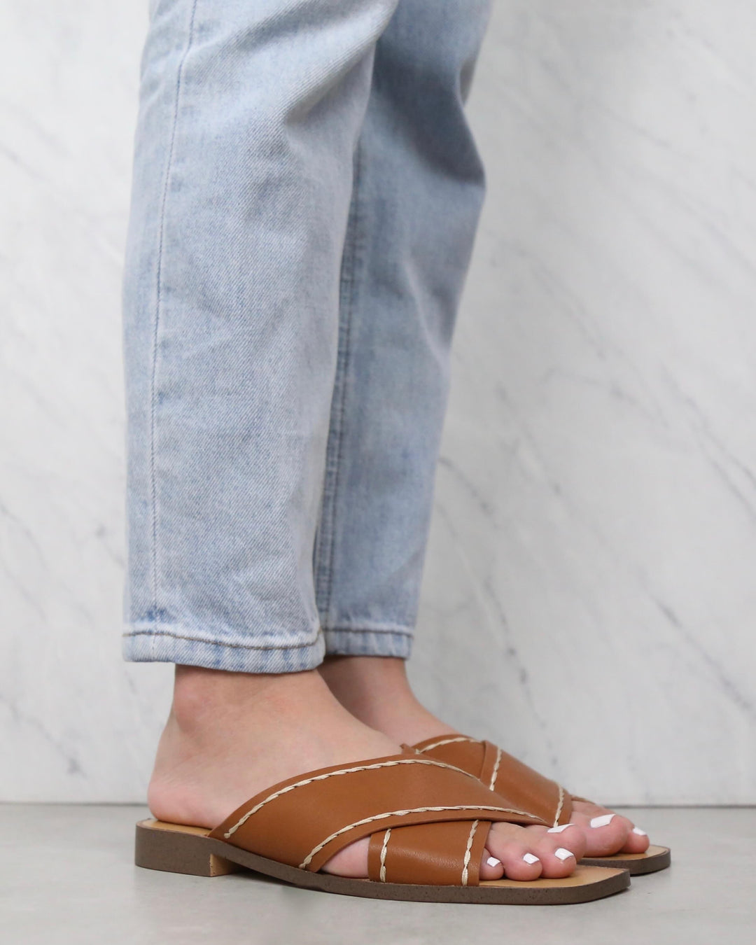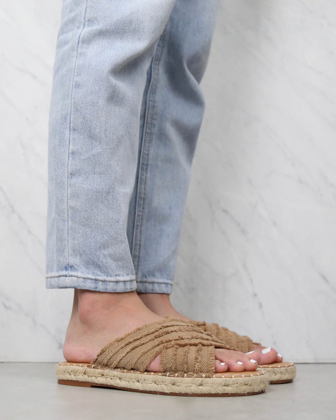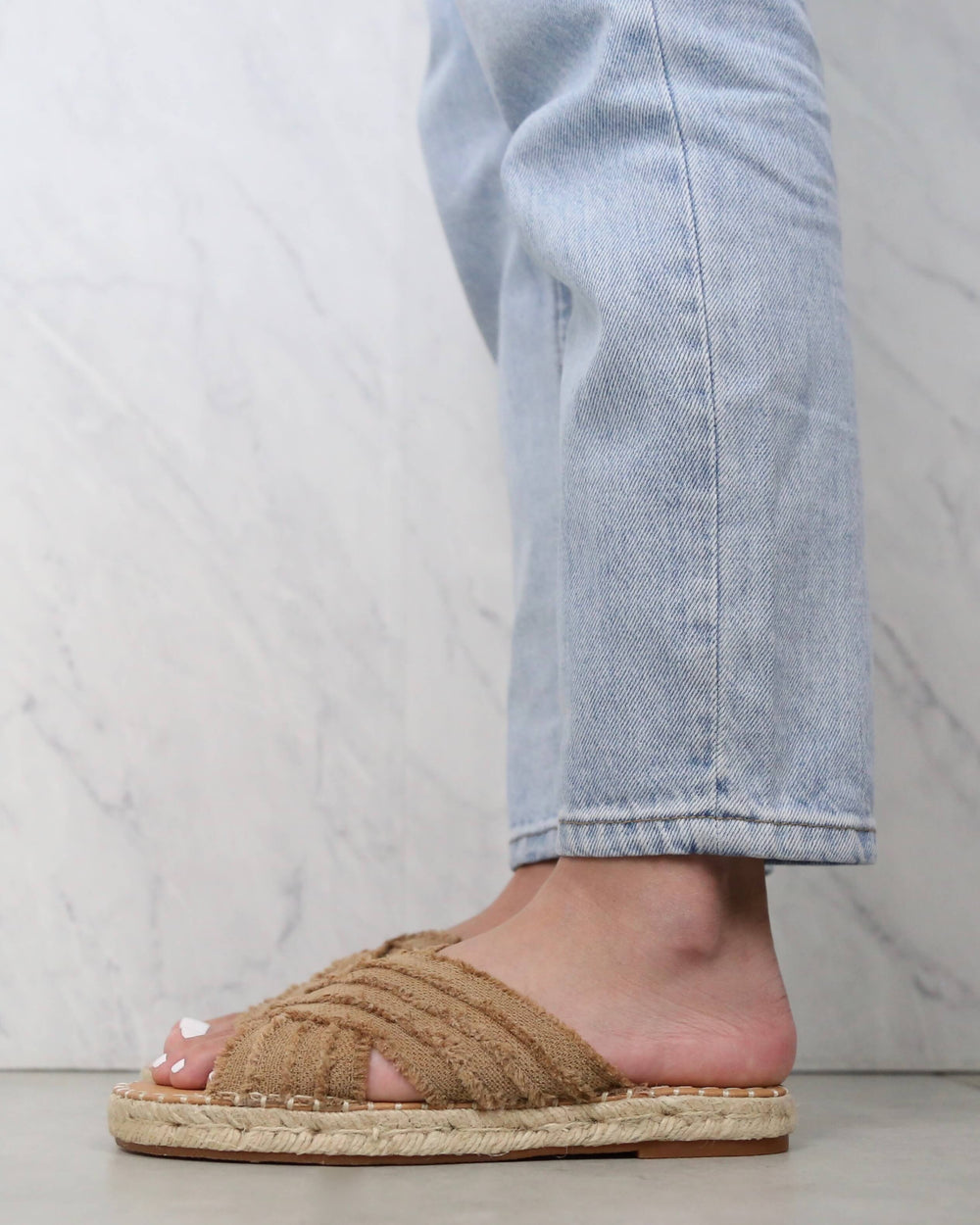 Celestial Criss Cross Frayed Beach Sandals in Latte