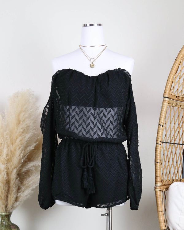 Cotton Candy LA - Strapless Cold Shoulder Boho Romper in Black