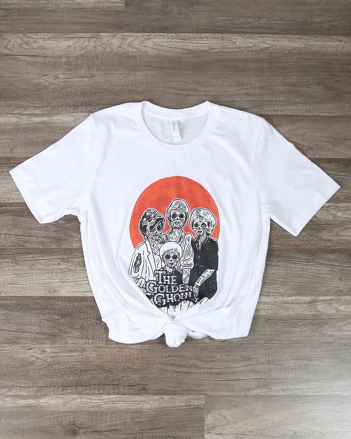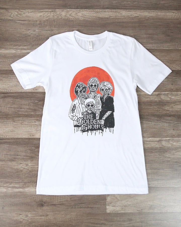 This cute graphic tee is perfect for any outfit, especially with its trendy details! Featuring a Halloween design that features a twist of the Golden Girls, this tee is perfect with some distressed jeans and sneakers!