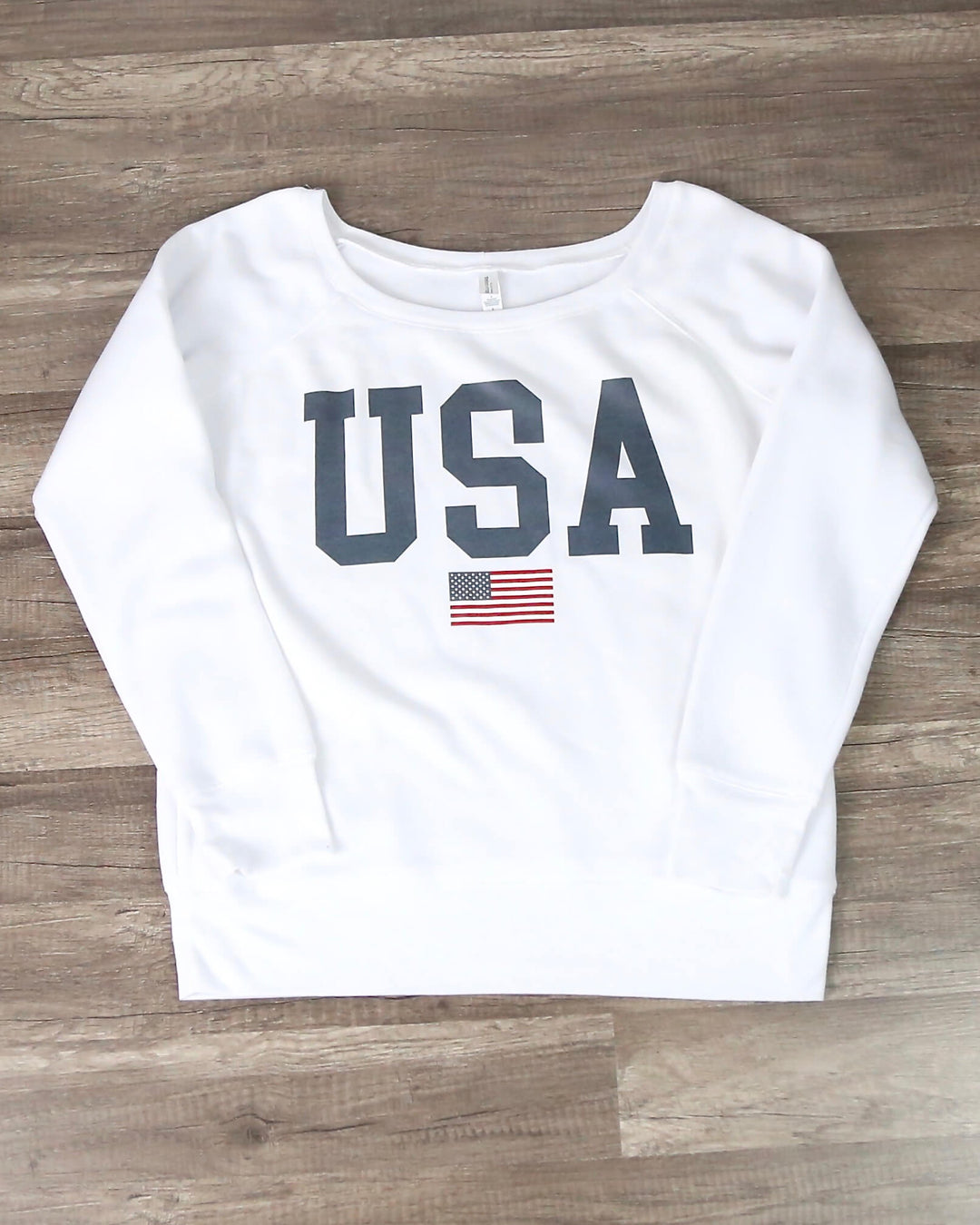 Distracted - USA Graphic Women's Sponge Fleece Wide Neck Sweatshirt - White