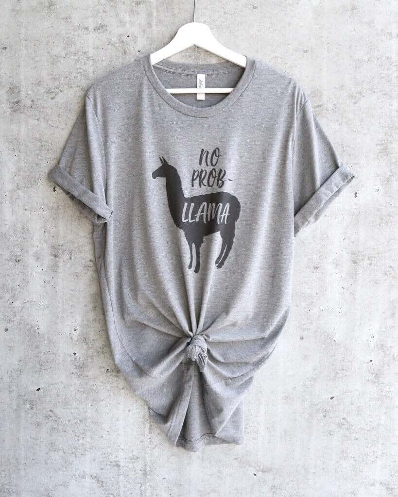 Distracted - No Prob Llama Funny Unisex T-Shirt in Heather Grey/Black