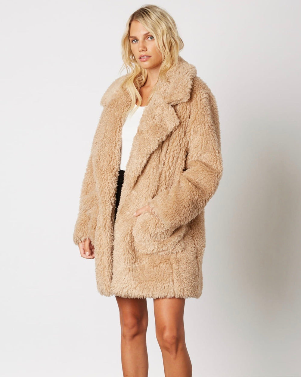 Cotton Candy LA - Open Collar Faux Fur Coat - More Colors