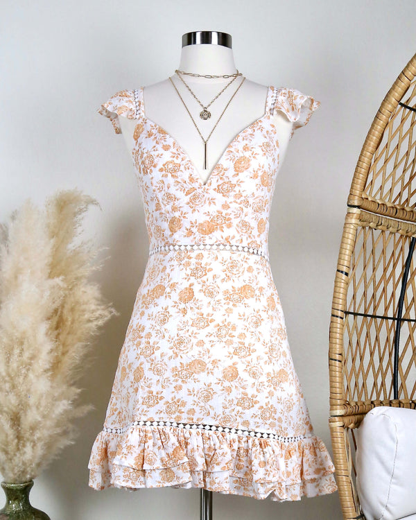 Freya Flutter Sleeve Smocked Midi Dress in Orange
