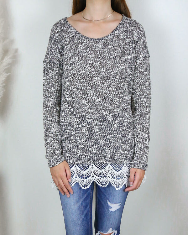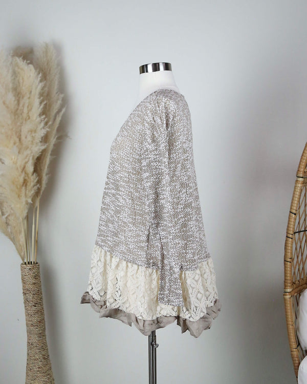 All Lace on Me Sweater Tunic in Grey