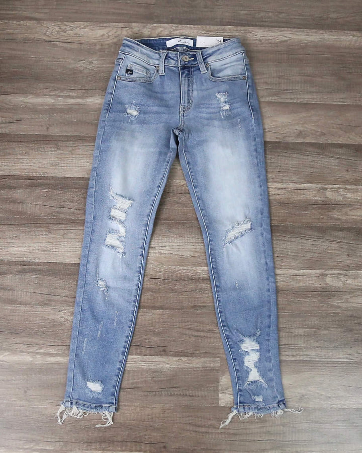 Looking for distressed light wash high rise skinny jeans? Well, these are the perfect pair. They're super cute and easy to style into your outfits. Wear these with your favorite crop top and pair of sneakers for a cute everyday outfit!