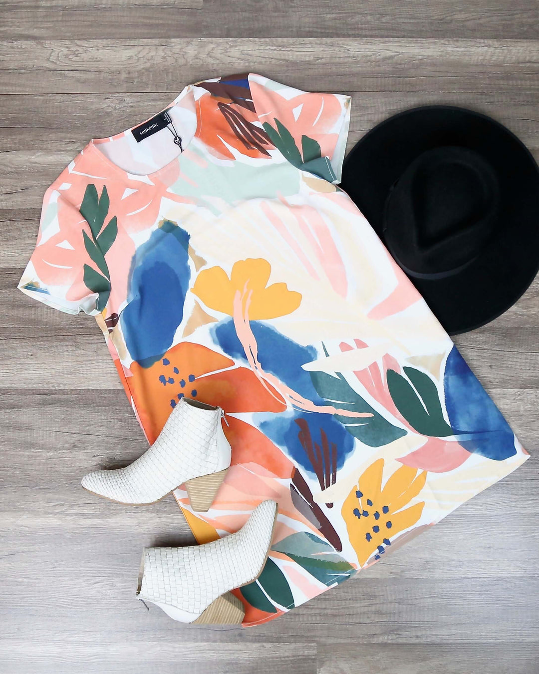 Final Sale - MINKPINK - Abstract Foliage Tee Dress in Multi