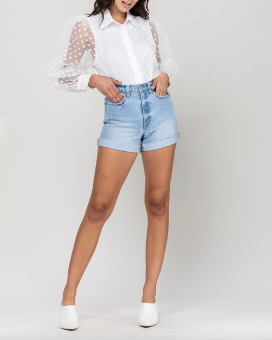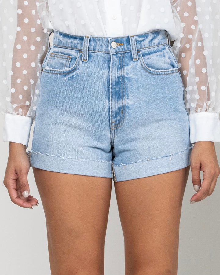 high rise - single cuff - mom jeans - shorts - light denim