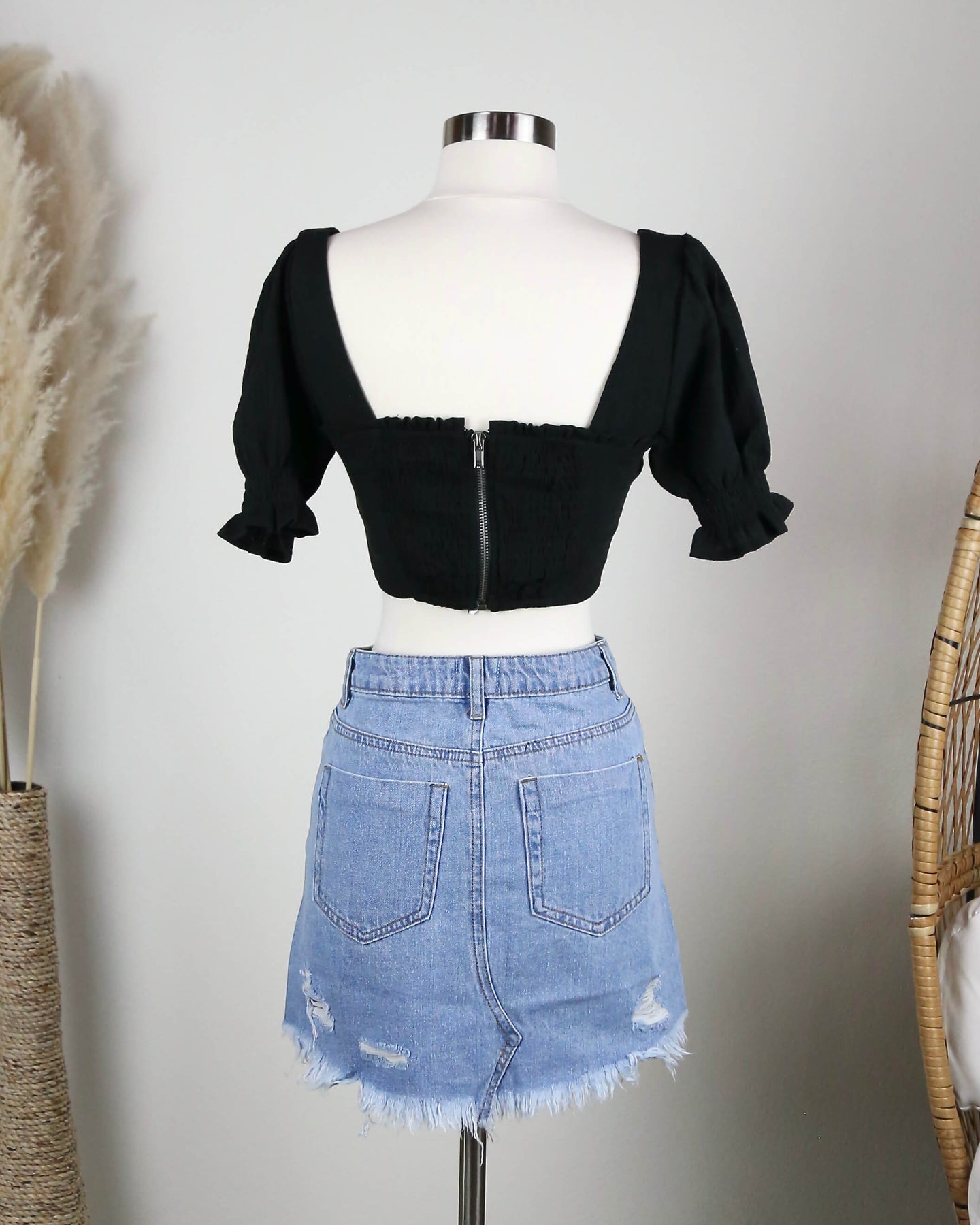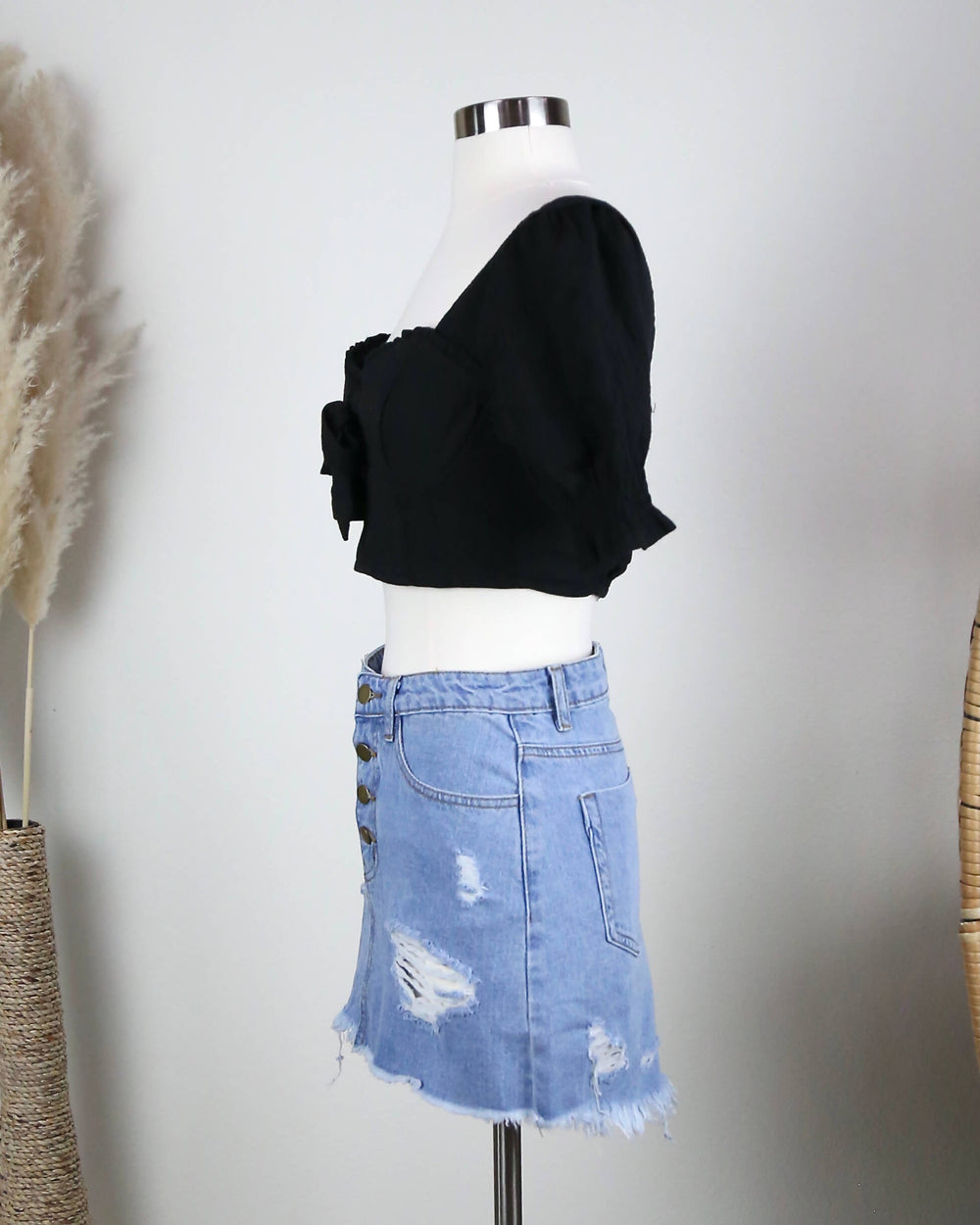 Distraction Bustier Cropped Blouse in Black