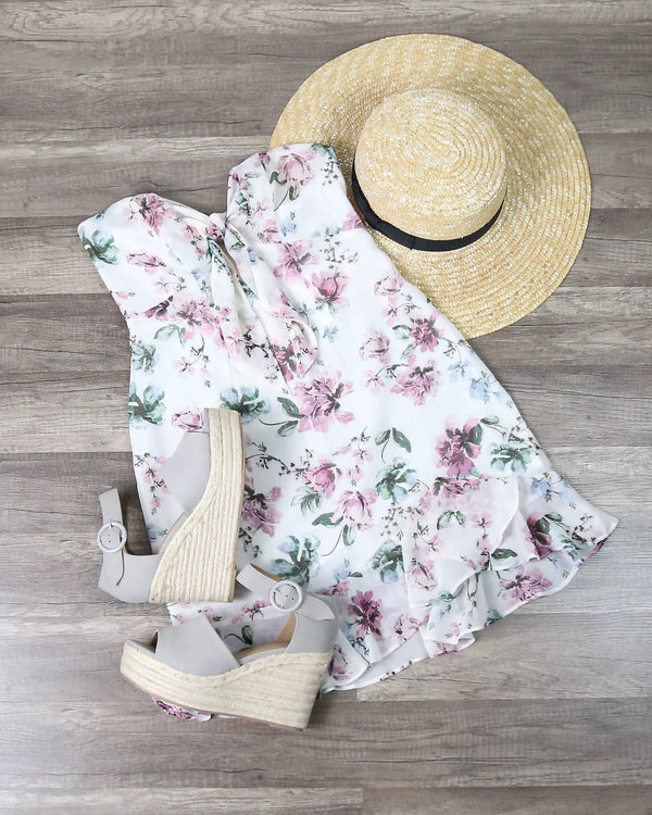 In My Feelings Ruffled Wrapped Sleeveless Romper in Ivory