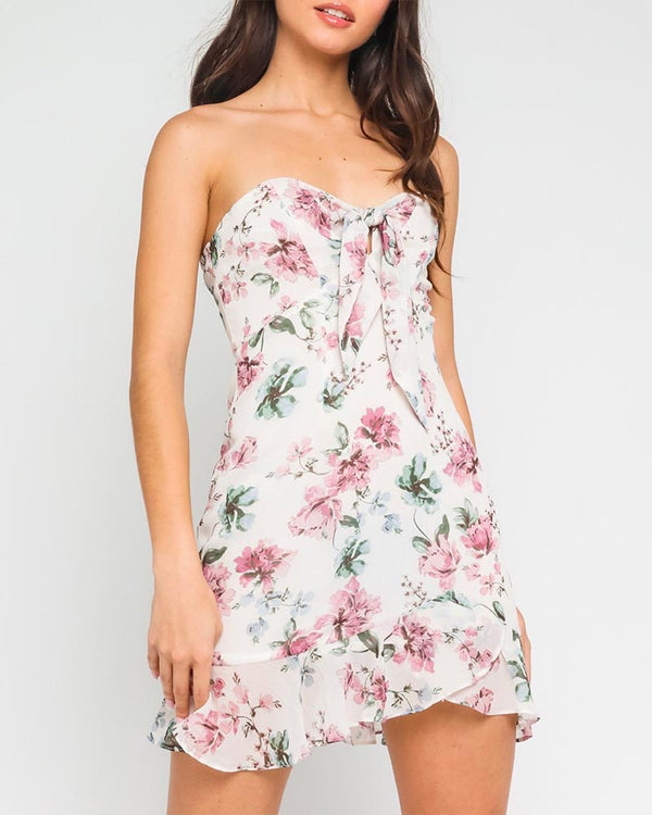 Take Your Time Ruffled Sweetheart Dress in Ivory