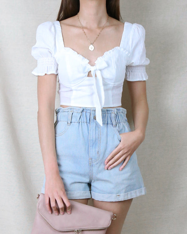Distraction Bustier Cropped Blouse in White