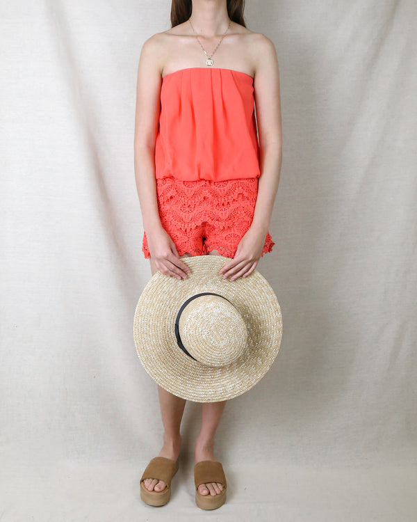 Strapless Sweetheart Bust Chiffon Romper in Coral