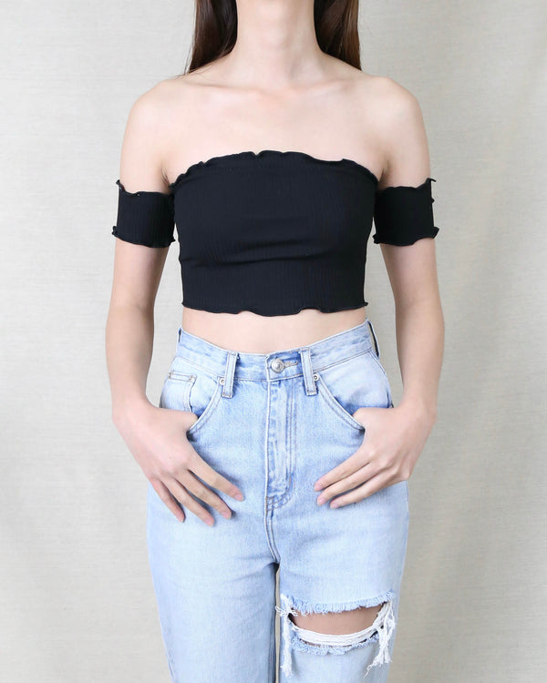 Reverse - Pretty Lady Ribbed Crop Top in Black
