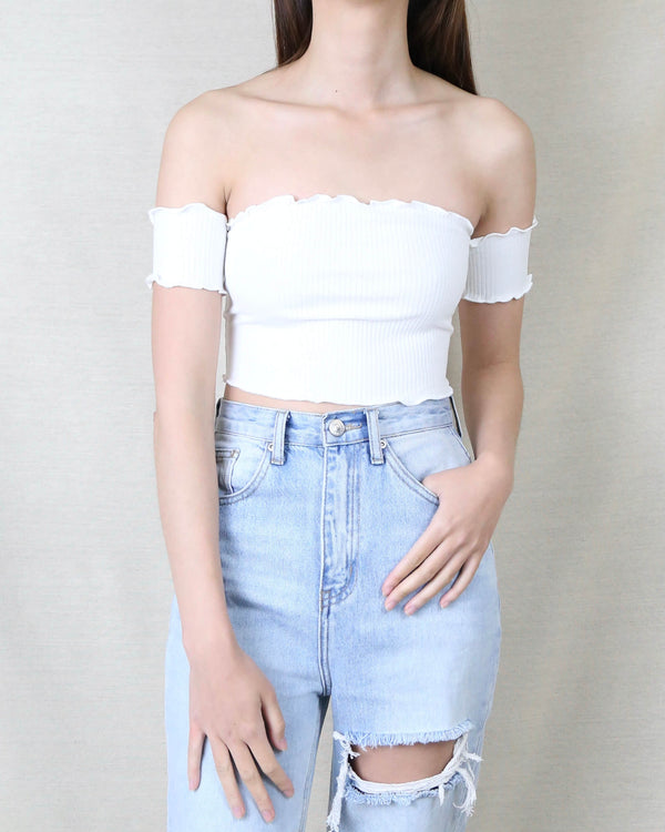 Reverse - Pretty Lady Ribbed Crop Top in White