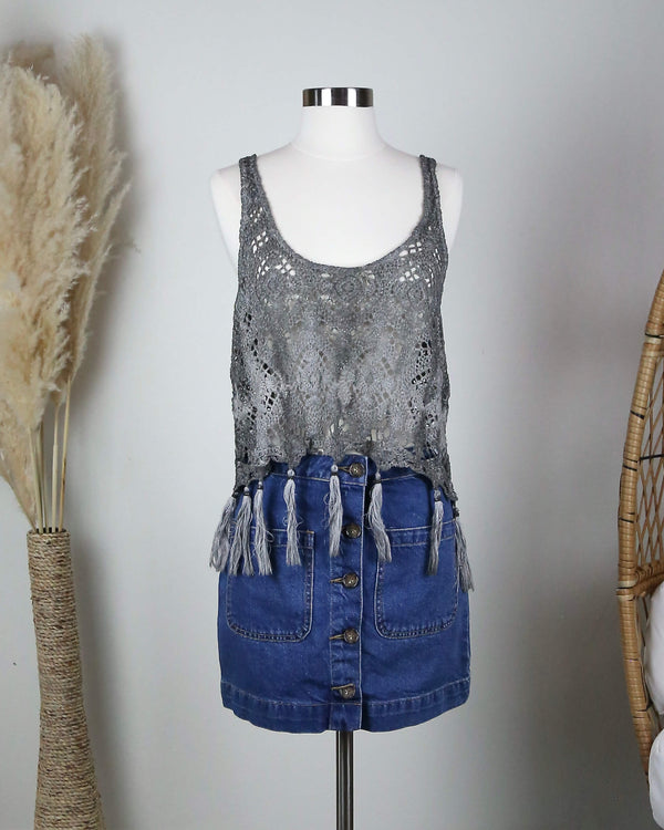 West Coast Crochet Tank with Tassels in Brown/Grey