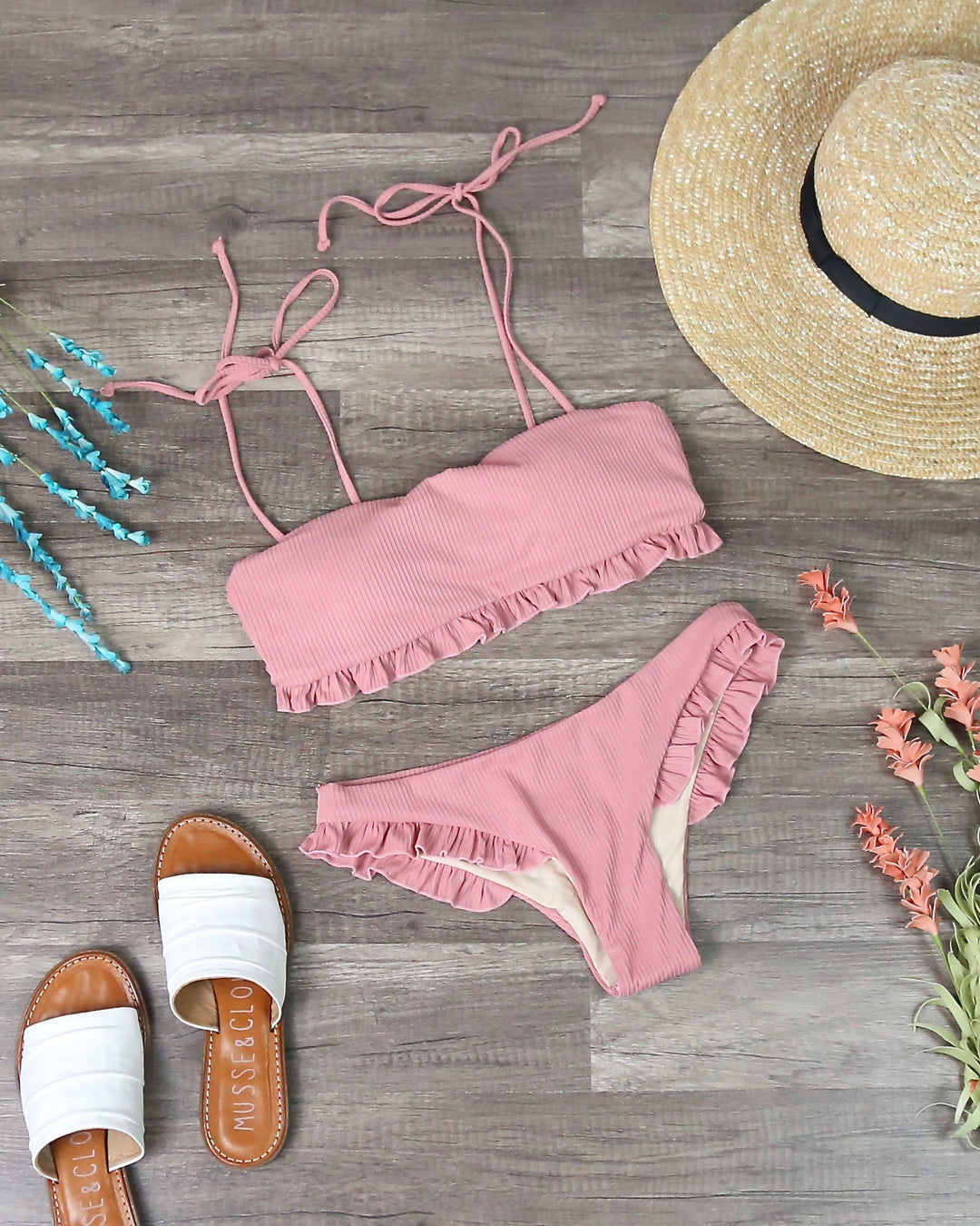 Lydia Ribbed Ruffle Trim Bikini in Peach