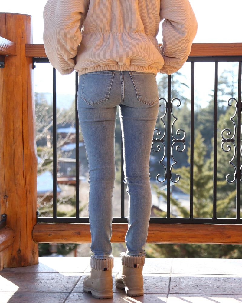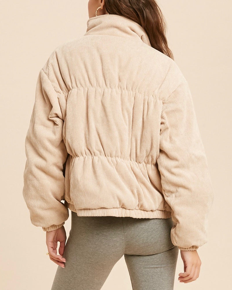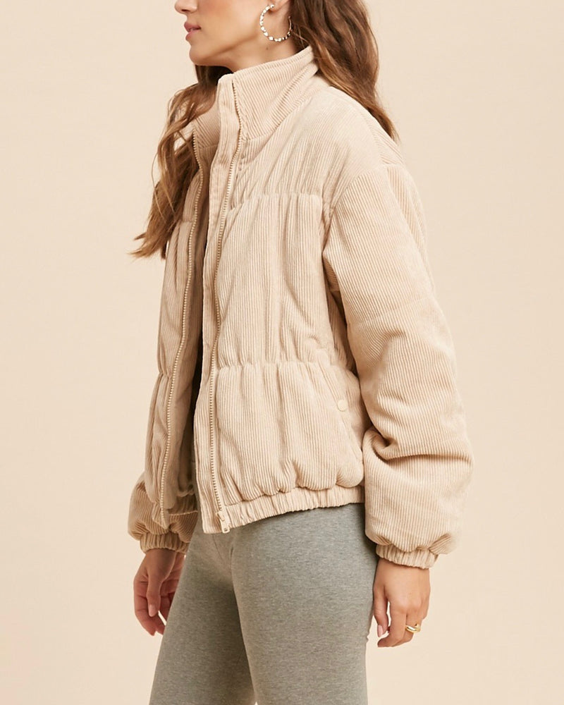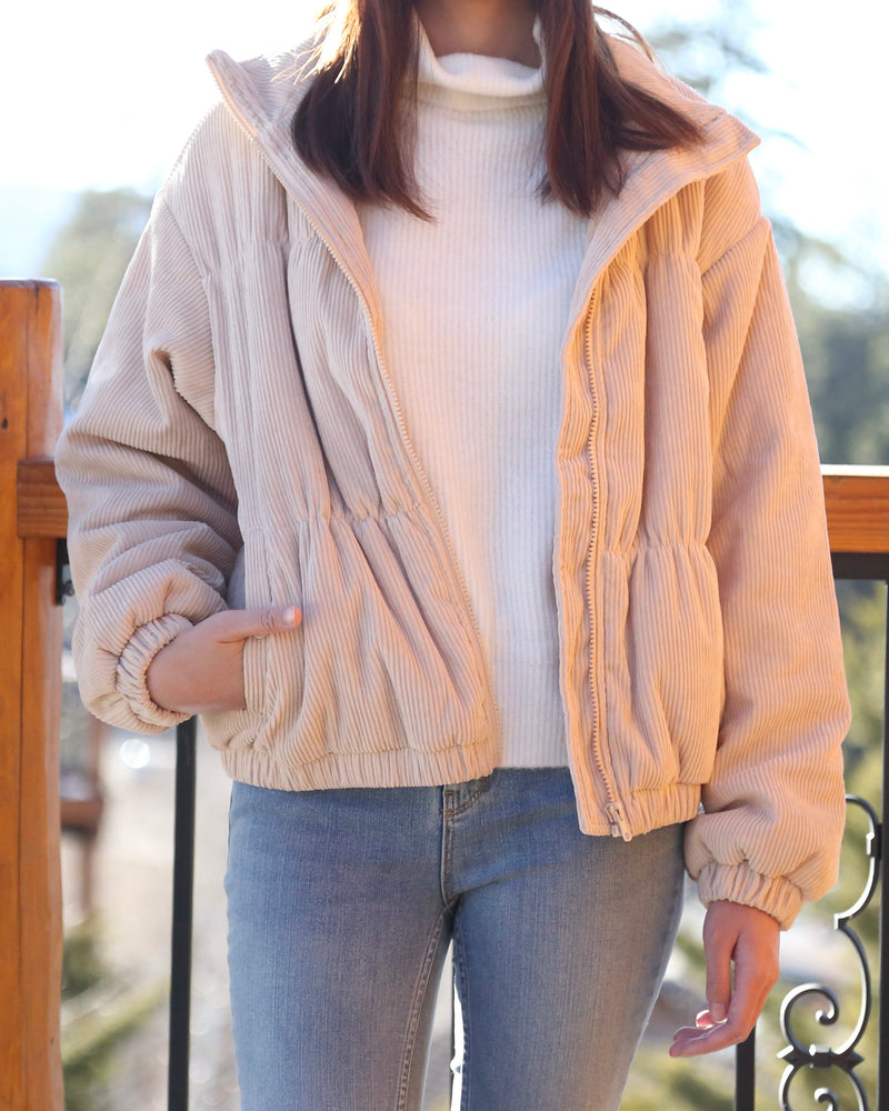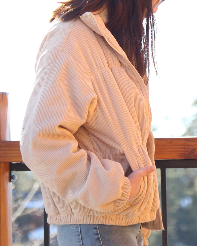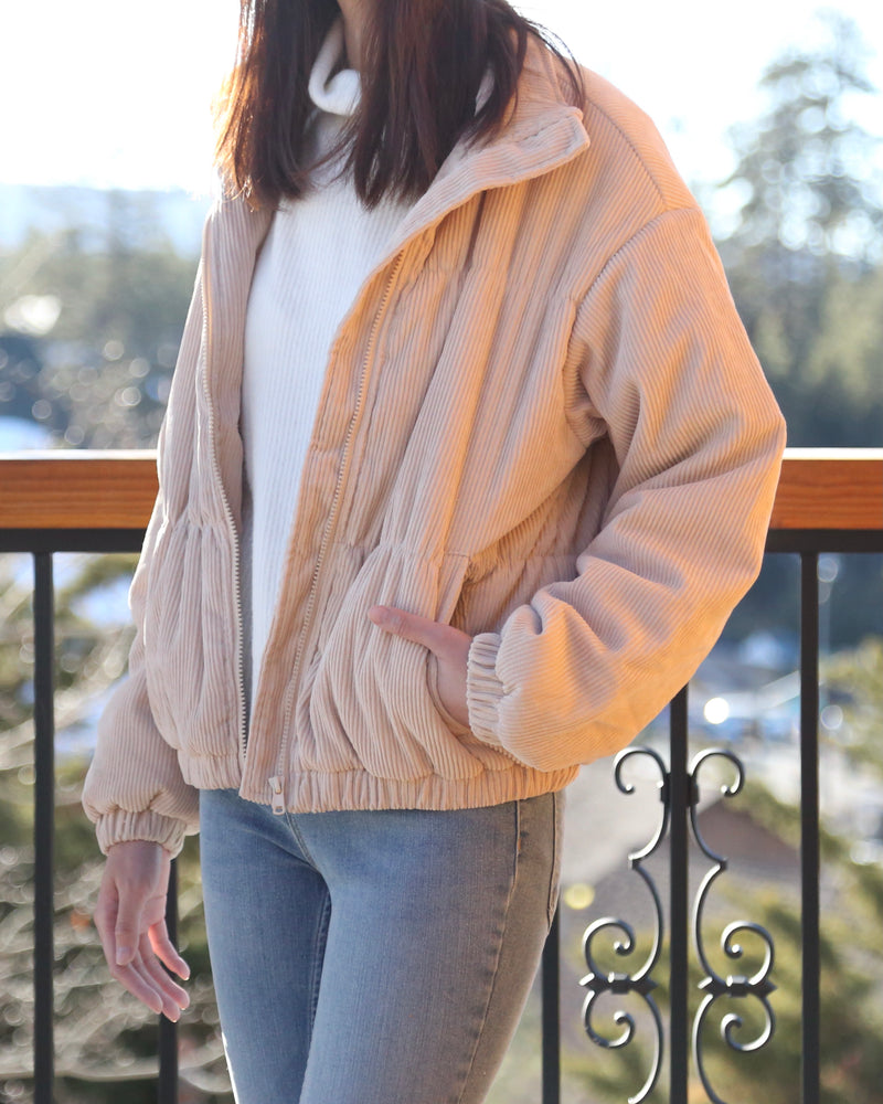 Cassidy Corduroy High Collared Bomber Jacket in Sand