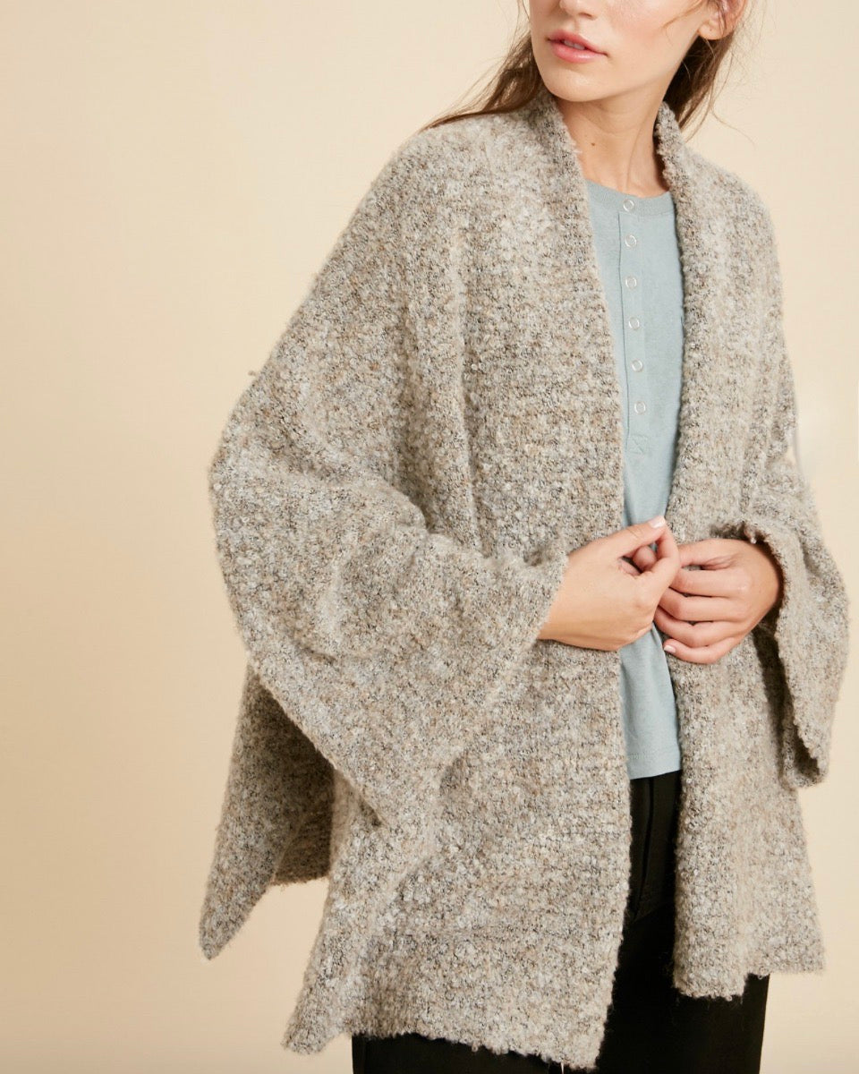 Fuzzy Open Front Kimono Knit Cardigan in Taupe Combo