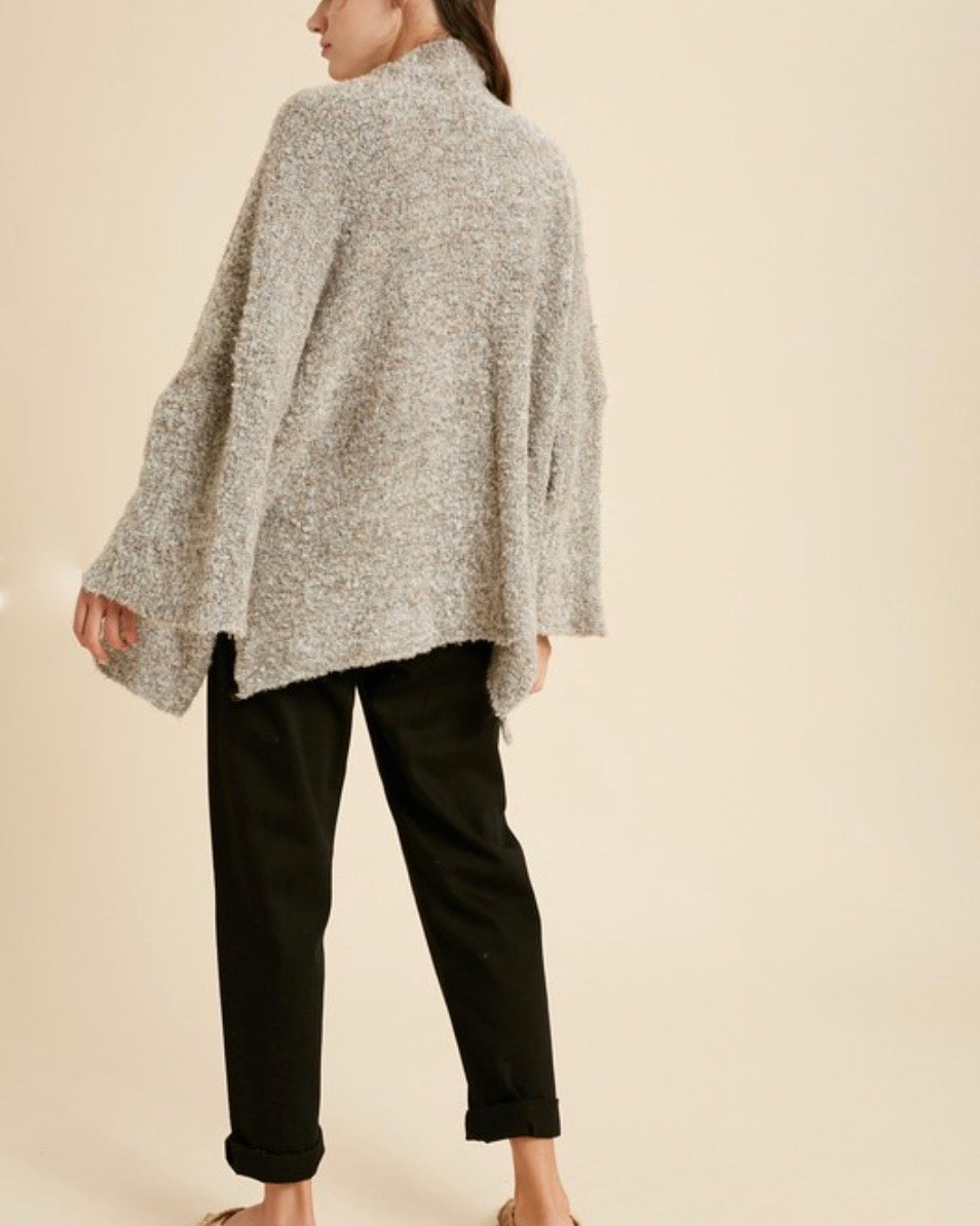 This fuzzy kimono cardigan is super cute and guaranteed to keep you warm and comfy this fall and winter seasons! Featuring an open front, wide long sleeves, side slits, this cardigan will look amazing in any outfit! Throw on this cardigan over your sweater and distressed jeans.