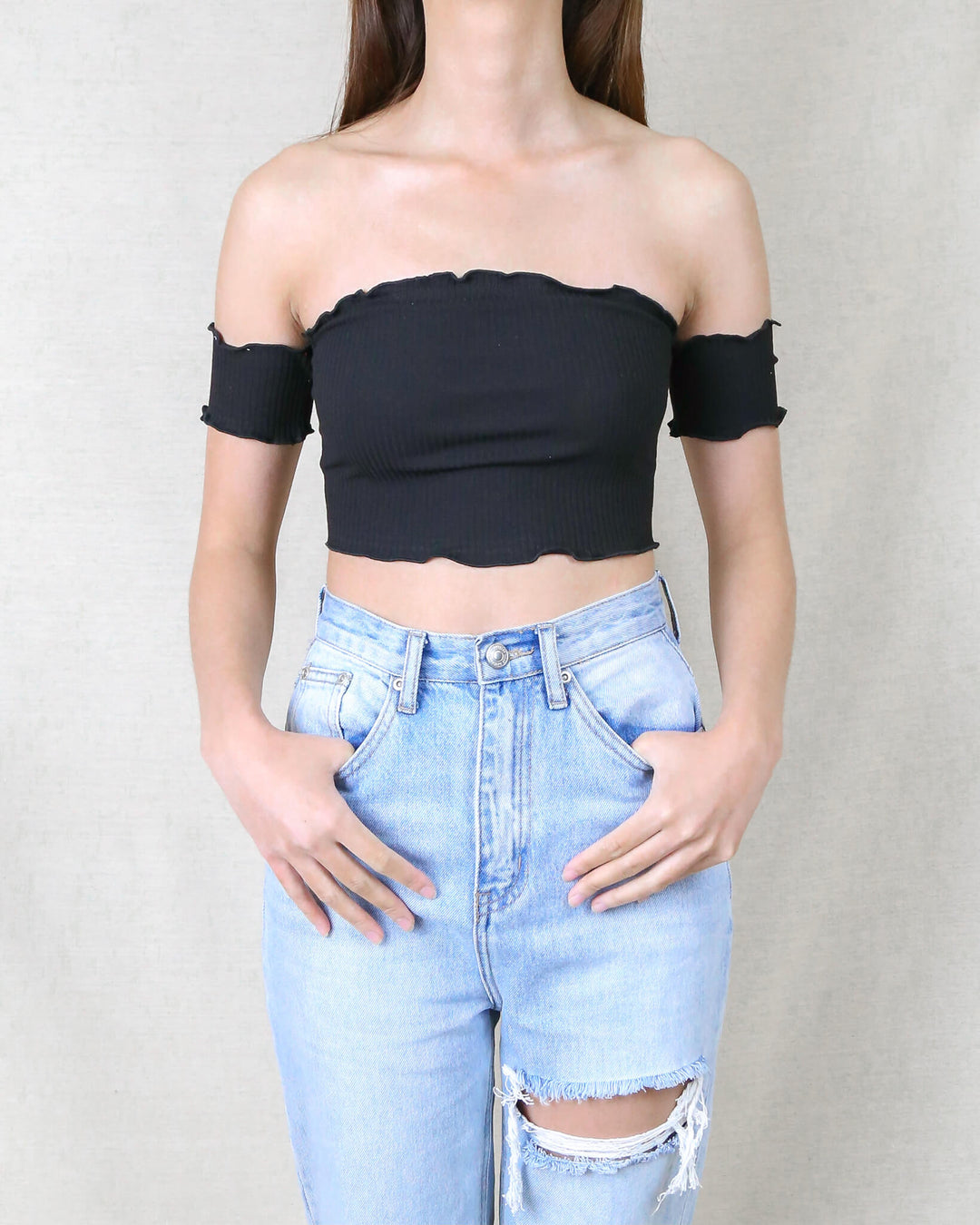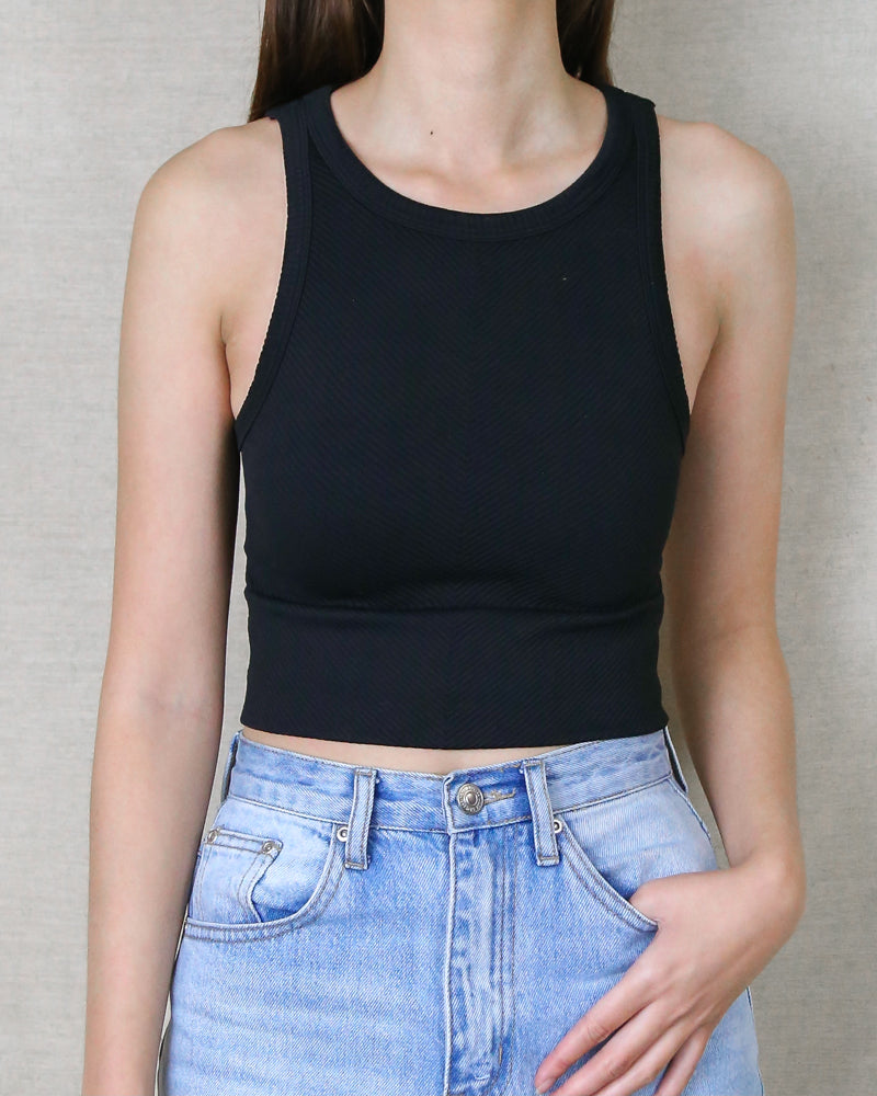 Reverse - Pretty Lady Ribbed Crop Top in Black