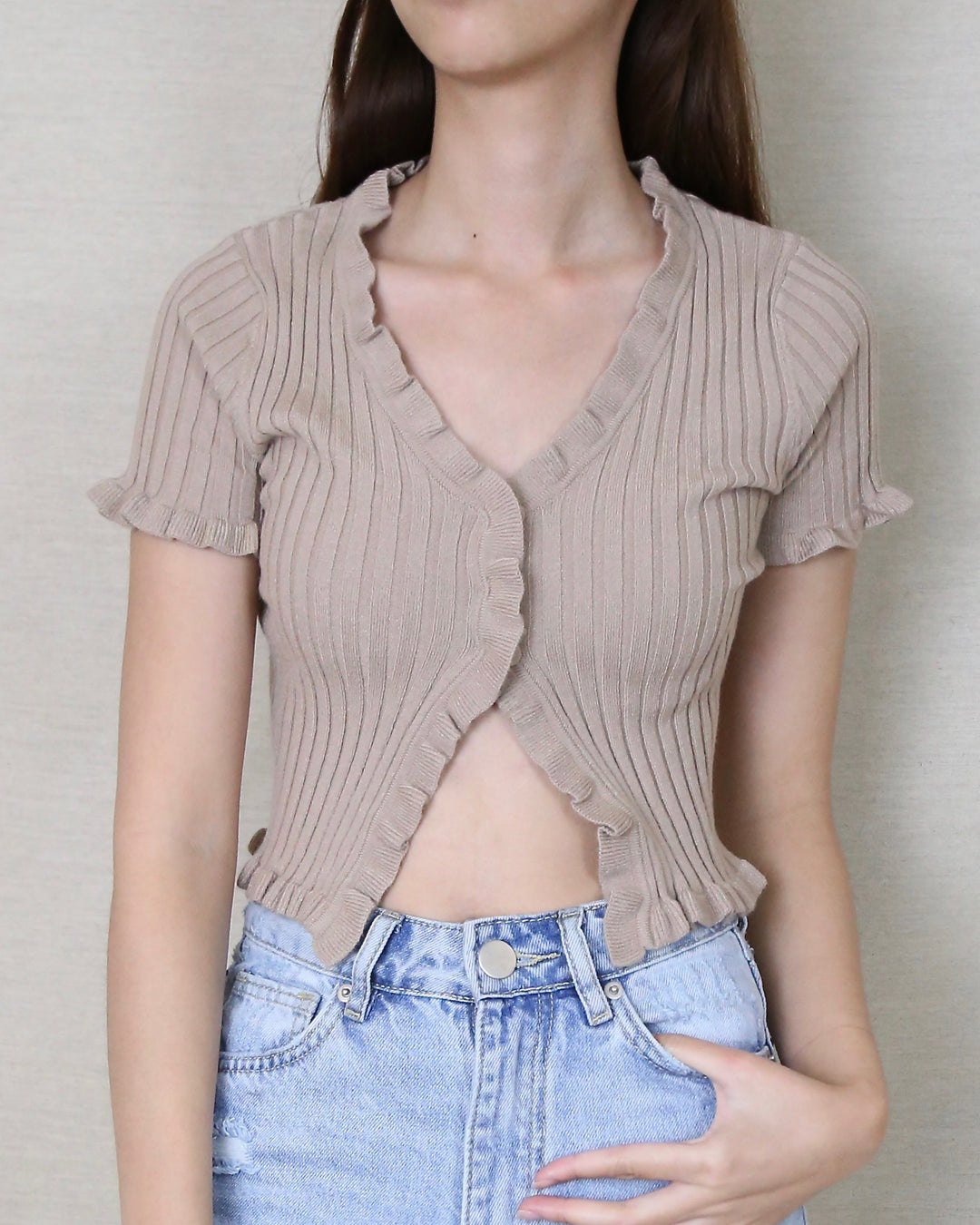 Rebecca Ribbed V-Neck Crop Top in More Colors