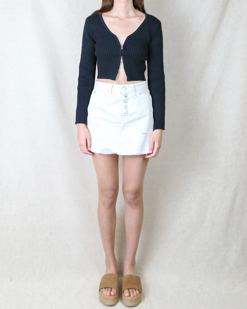 Two Way Zipper Knit Ribbed Long Sleeve Sweater Top in Black