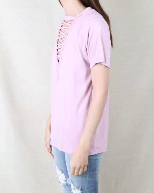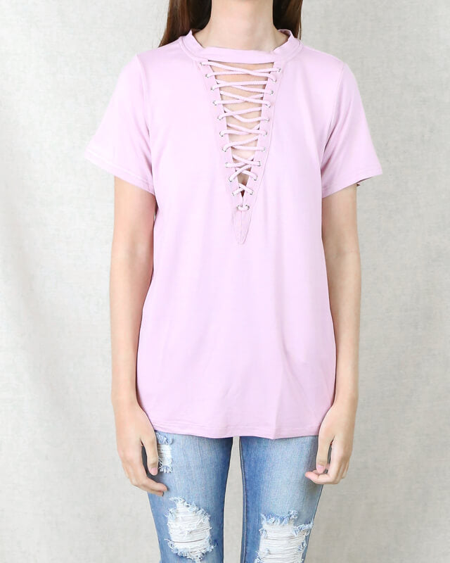 POL BASIC - Vintage Acid Wash V Neck T-Shirt in Burgundy