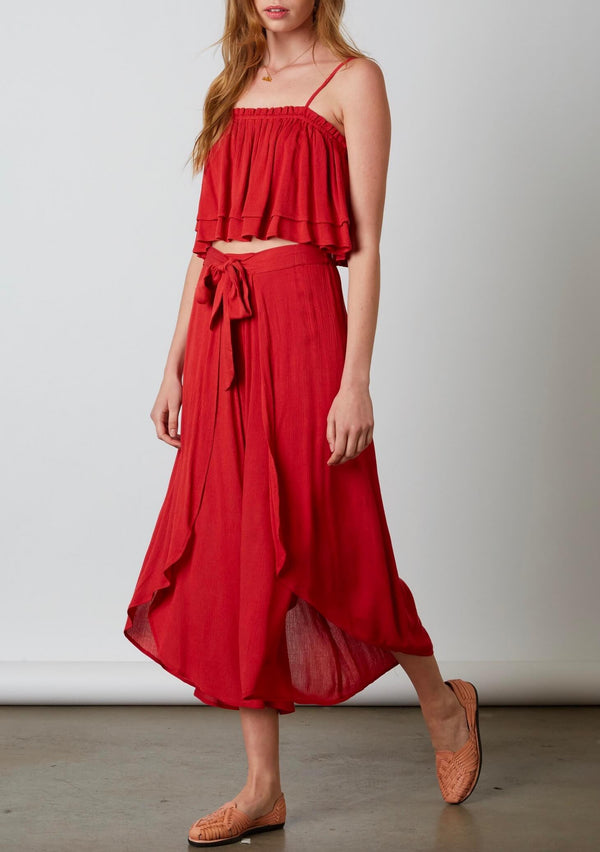 FINAL SALE - Reverse - Burgundy Floral Two Piece Set with Ruffle Hem