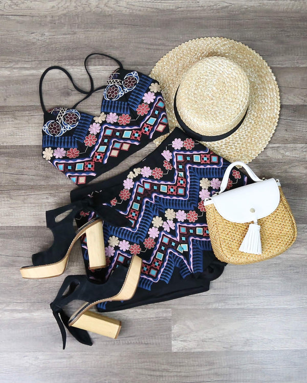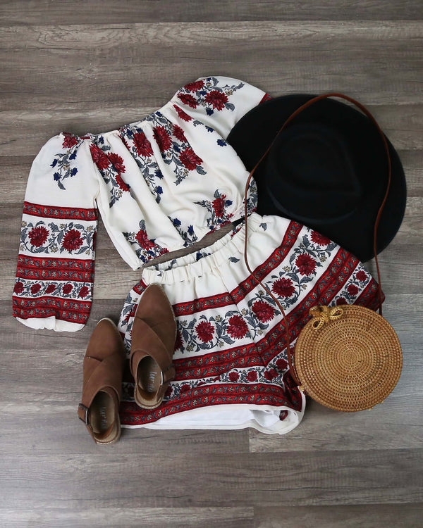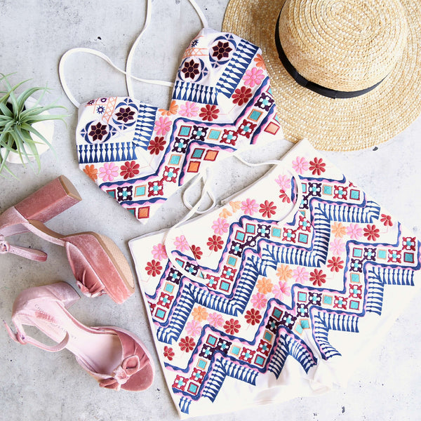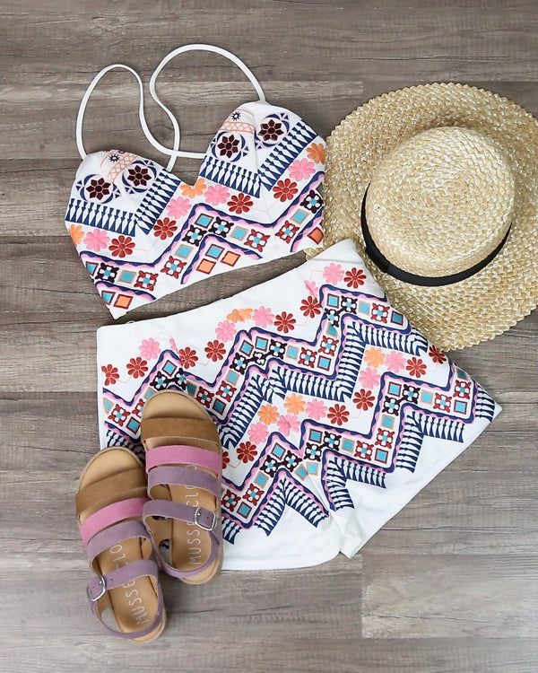 Final Sale - Festival Shop - Boho Print Two Piece Set - White/Blue