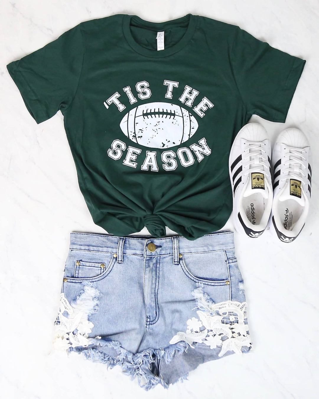 Distracted - Tis the Season Football Graphic Tee in Green