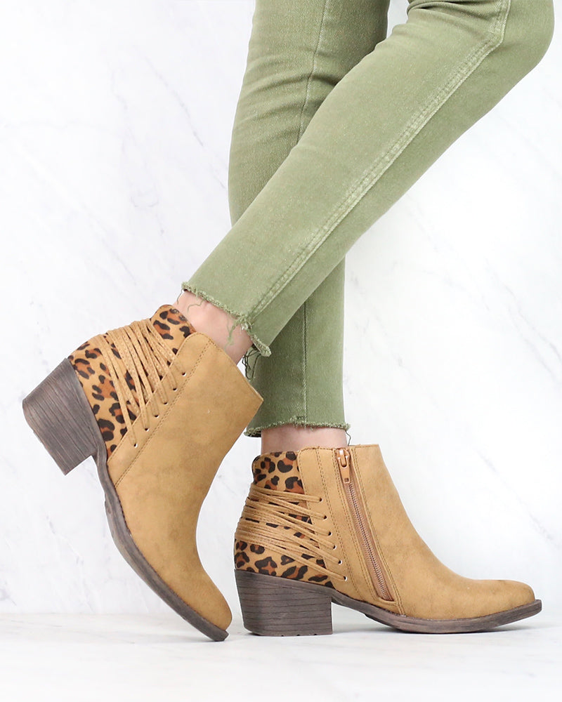 Volatile - Clio Leopard Cut Out Ankle Bootie - Tan/Leopard