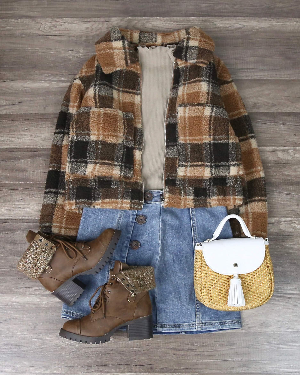 Vintage Style Hi-Low Distressed Leopard Denim Shirt Jacket/Shacket in Olive