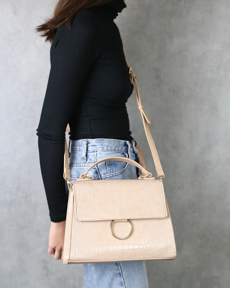 This purse is super elegant as it features a top handle, a detachable long strap, magnetic snap overlap with a metal ring finishing detail, zipper interior with multiple pockets. This spacious handbag purse infused with trendy designs is perfect for everyday occasions!
