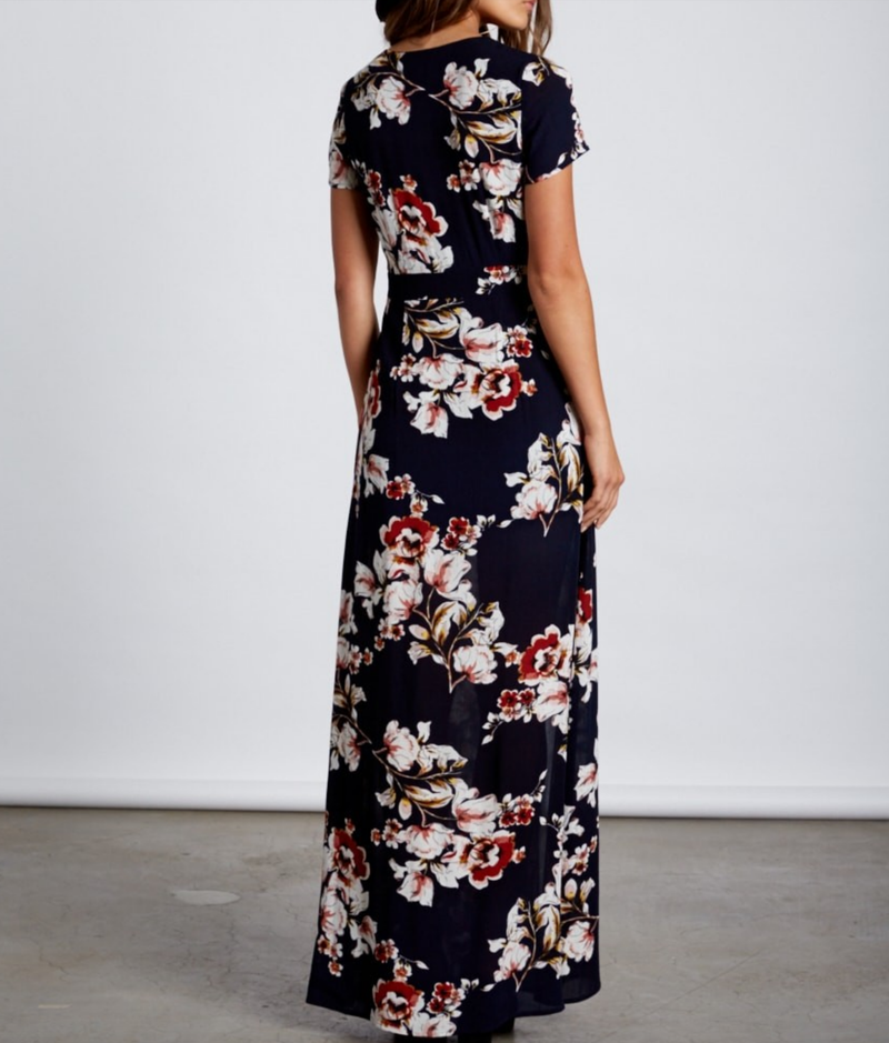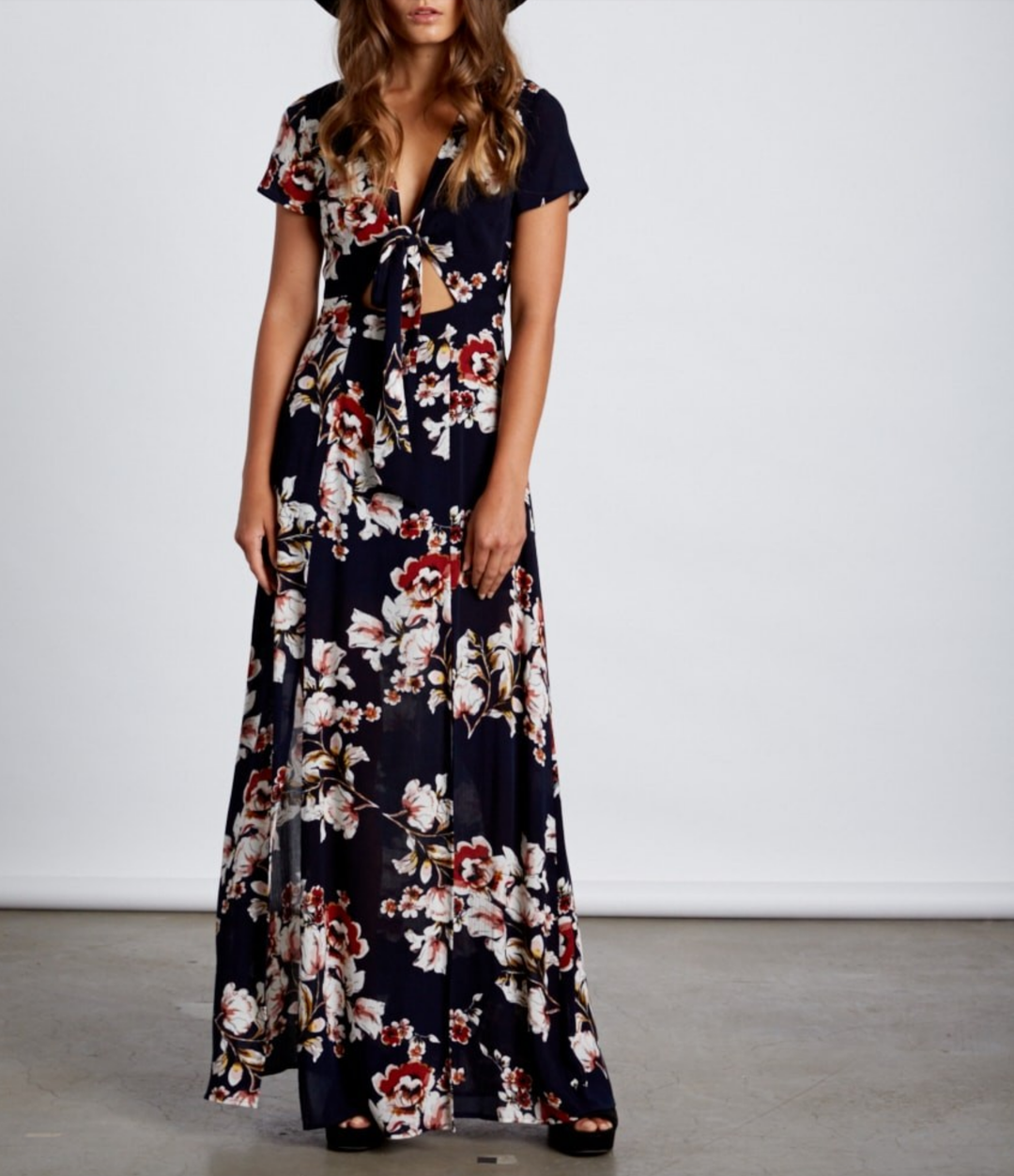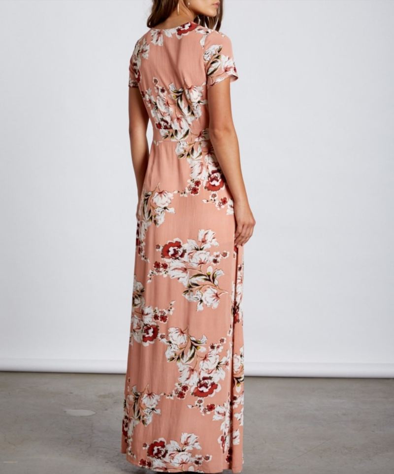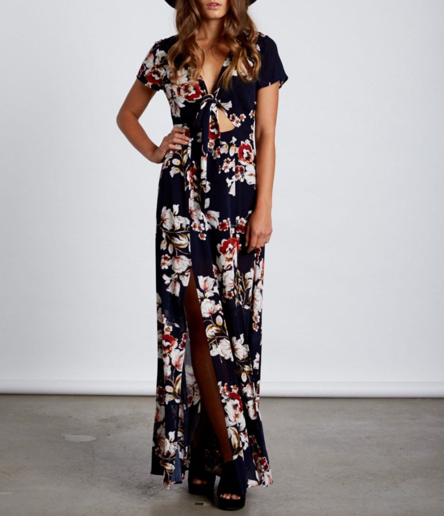 This dress is perfect for the spring/summer season! This dress features a maxi length, tie front, v-neck, and a slit that gives you a wow factor. Pair this dress with some sandals and you're good to go.